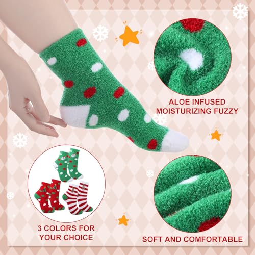 Suhine 3 Pair Christmas Aloe Infused Ultra Moisturizing Socks Colorful Patterns Fuzzy Christmas Socks Aloe Vera Socks for Spa (Cute)