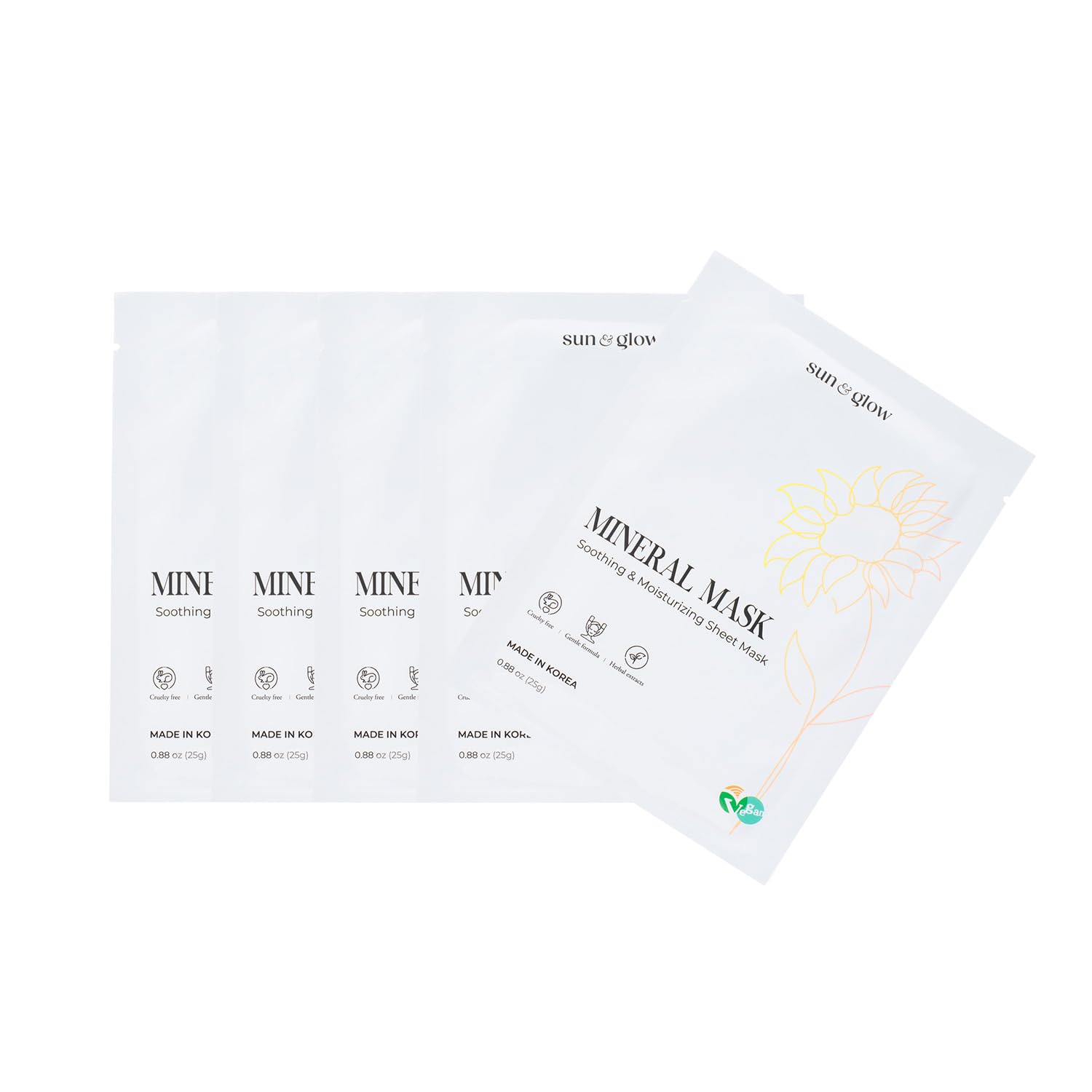 SUN & GLOW VEGAN MINERAL MASK with Pearl Extract Yuzu and Eucalyptus Using Mineral-Rich Deep Sea Water Korean Home Skincare Mask (0.88oz 25g 5Packs)