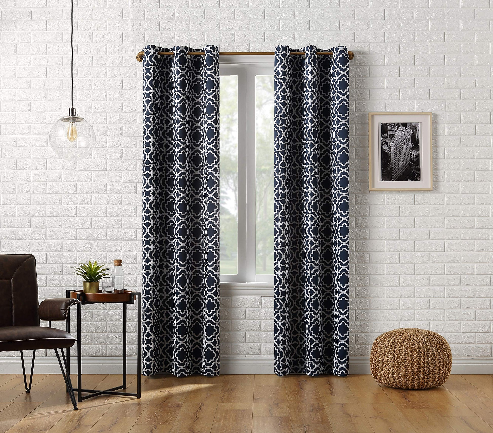 Sun Zero Barnett Trellis Blackout Grommet Curtain Panel, 40" x 84", Navy Blue