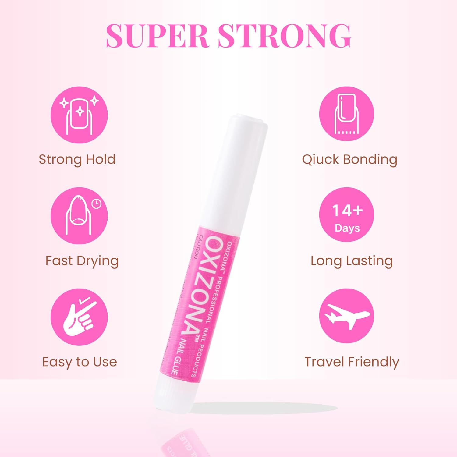 - Professional Nail Glue: Oxizona acrylic nail glue is super strong nail glue for press on , nail tips, acrylic nails, fake nails short or long, and broken nail repair. It has advantages such as fast drying, quick bonding, excellent adhesion, strong stickiness, easy application, and long-lasting durability