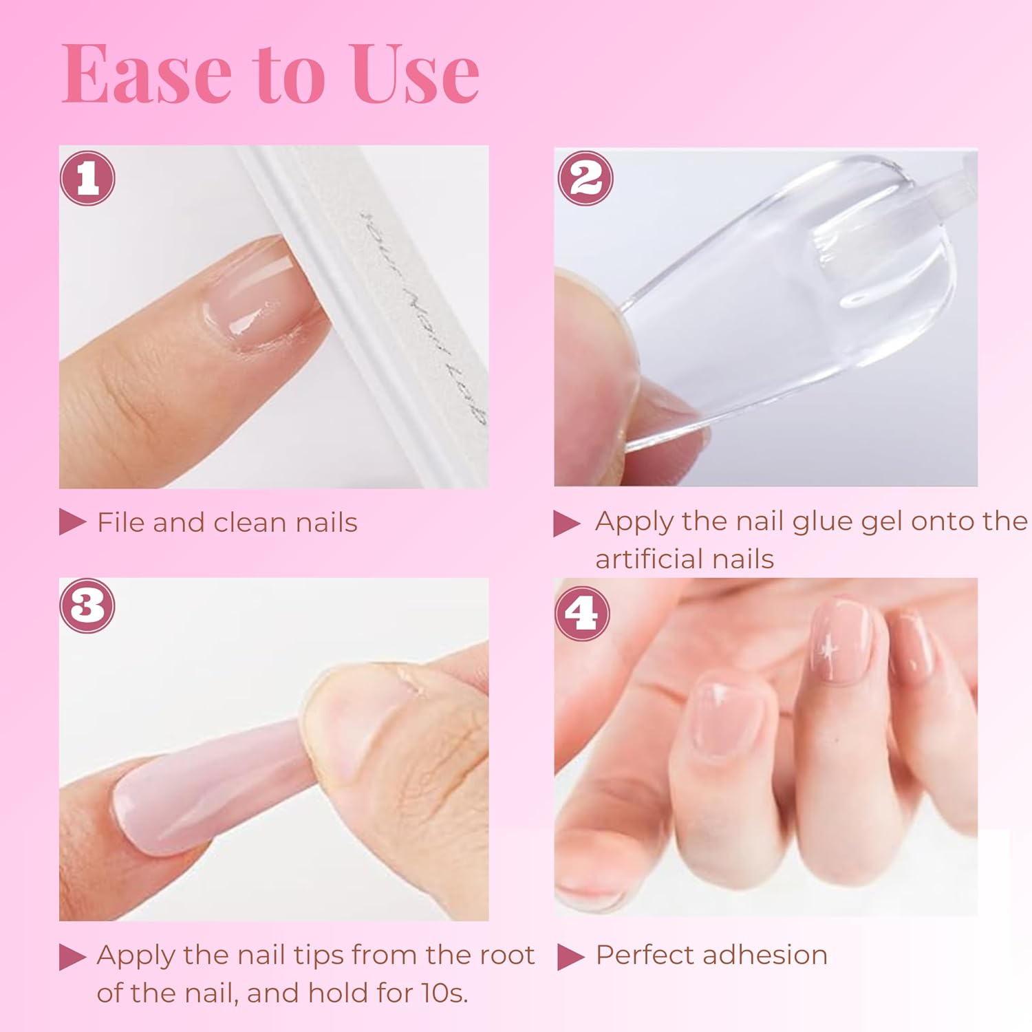 - Easy To Apply & Remove:No nail lamp cure required - just 1 minute per finger. When removing artificial nails, soak them in acetone polish remover until the glue dissolves. Avoid damaging or peeling them off directly to protect your natural nails.Each pack contains 2g of glue, with each nail tip requiring 0.05-0.1g each time