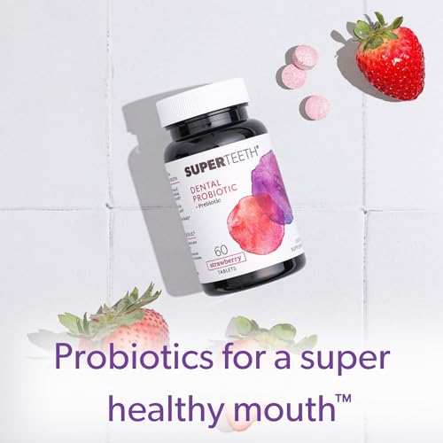 SuperTeeth Chewable Dental Probiotic for Kids & Adults | Supports Healthy Teeth & Gums | Oral Health | Fights Bad Breath | BLIS M18 | 60 Strawberry Flavored Tablets | Fluoride & Sugar Free | Vegan