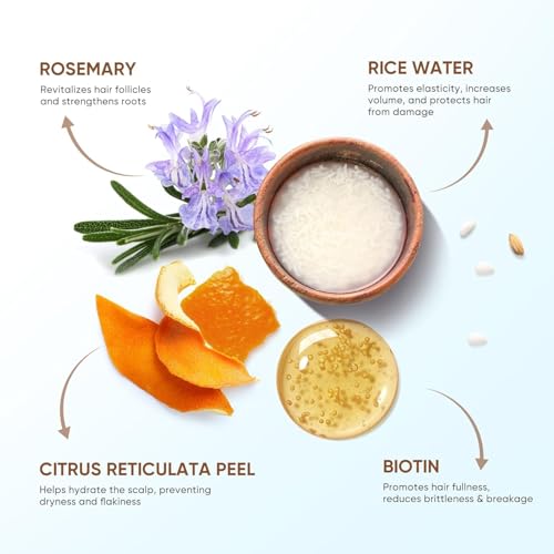 - Premium Natural Formula - This rice water hair growth shampoo for Men and Women is made with superior quality, natural and safe formula, a unique blend of powerful active ingredients which include rice water, rosemary,biotin, citrus reticulata peel and ginger root, being extremely gentle on your delicate scalp.