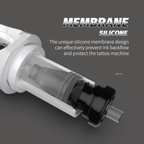 - With Silicone Membrane Design: The tattoo needle cartridges assorted is equipped with a silicone membrane, which effectively prevents ink leakage into the machine, providing a certain degree of protection. The outer shell of the tattoo needles liners has added a silicone outer ring to increase the outer diameter, reduce vibration, and ensure more stable needle output.