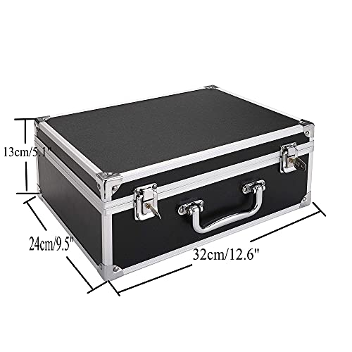 Tattoo Kit Box,Tattoo Case Organizer 12.6" x 9.5" x 5.1" W/Lock Machine Carrying Case,Aluminum Alloy with Sponge for Tatto Machine Box (black)