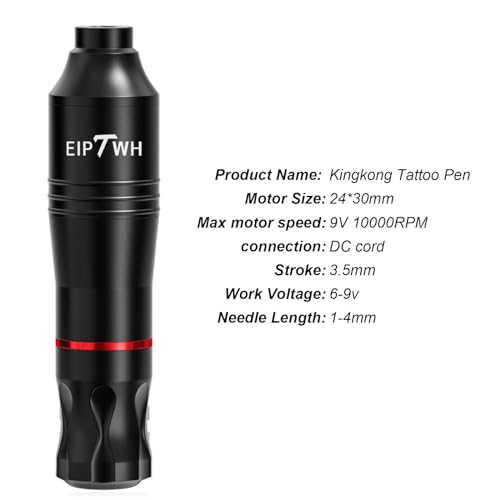 - Rotary Tattoo Pen:This tattoo pen is crafted from high-quality aluminum alloy,Using motors imported from Switzerland,the performance is stable and lightweight.The maximum speed can reach 12,000 rpm,and the adjustable needle length is:2.5-4 mm.The recommended operating voltage is 8-10V,using DC connection.Both professional tattoo artists and beginners can easily control it,and it is suitable for tattoos,semi-permanent eyebrow tattoos,and eyeliner tattoos.