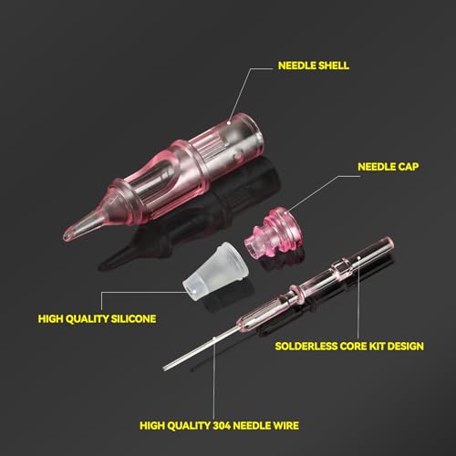 - Tattoo Cartridges Needles:Our needles are made of high-strength stainless steel with a diameter of 0.35 mm.10 needles are mixed in 2 models,5 of each 5RL,5M1,each individually packaged and sterilized by EO.Gas.