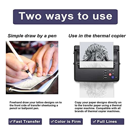 - ?TWO WAYS TO USE - The stencil transfer paper is highly compatible with thermal copiers or dot matrix printers. Another way is to draw the original design you want directly on the paper. Two ways to use are very easy. Non-fading and reusable.