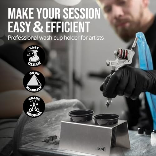 - 316 Stainless Steel Tattoo Cup Stand Holder : High-quality 316 stainless steel ensure the durability of the tattoo rinse cup holder,Grade 316 stainless steel is ideal for multi-scenario applications where high tensile strength is required or that involve regular exposure to corrosive elements like tattoo ink, water, or detergent.