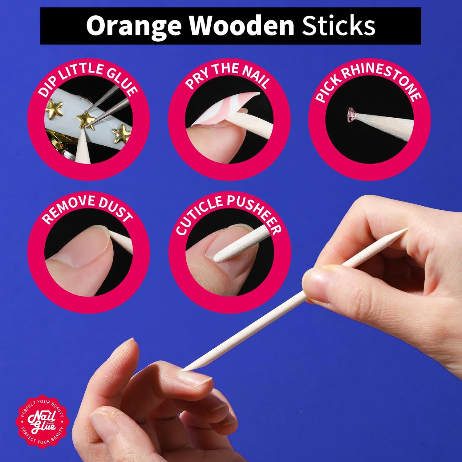 - Multipurpose Orange Wood Nail Sticks: Full length is about 11 cm/4.33 inch, double end design, pointed end can help clean nail polish outside your nails, can be used to dip water then as dotting tool, or dip little glue help stick nail decoration; the flat end can help push back the cuticle, help remove false nails and lift nails sticker