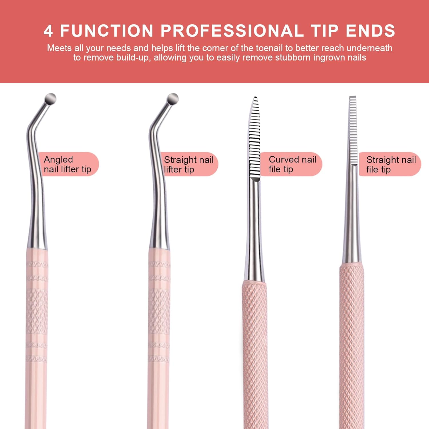 - Surgical Safe Ingrown Toenail Treatment: Ingrown toenail tool built in surgical grade stainless steel, never go rust and easy to disinfect; patterned by non-slip curves, they’re easy to grip and handy to use. Good to clean away debris and dirty deep into the flesh for ingrown nails and under nails at home on your own