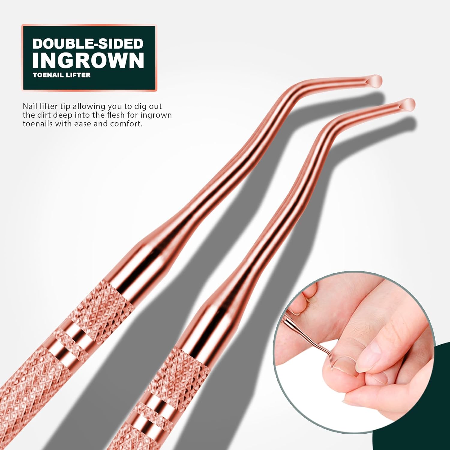 - Upgraded Ingrown Toenail Lifters Of 2 Designs: We offer an angled toenail lifter (6.49 inch long), and a straight lifter (5.20 inch long), 2 different styles of lifter can meet all your need, help lift the corners of the nail to better get beneath it to remove the buildup, allow you to remove bad stubborn ingrown toe nail with ease, the little spoon-like ends work great for cleaning & removing old, dry skin