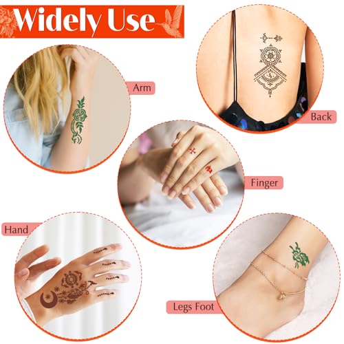 Temporary Tattoos Stencils Kit,Temporary Tattoos Kit - 8 Pcs 4 Color(Brown,Black,Cherry red,Green), Ink with Gloves,DIY Body Art Painting for Women Men Adults Kids