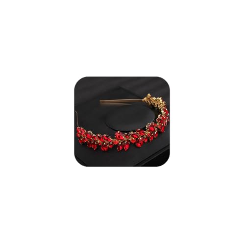 Teyglen Crystal Wedding Crown Bridal Red Rhinestone Tiara Headband Full Blue Black Pink Pieces Handmade Rhinestone Headpieces Hair Accessories for Women Party Prom Birthday (Red)