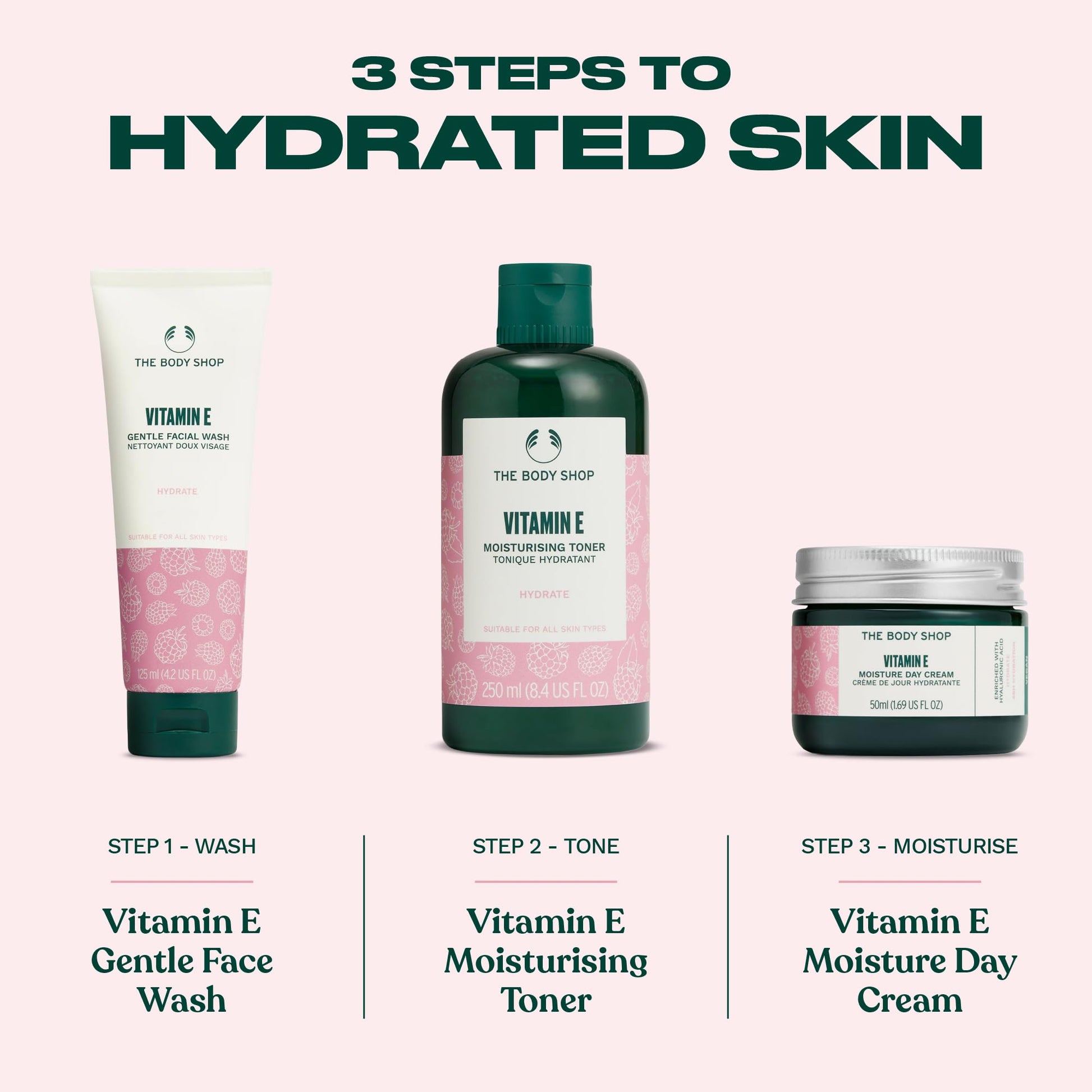 Our Vitamin E Gentle Facial Wash helps clean your face, without drying it out, revealing skin that instead feels soft and refreshed. While washing your face might seem pretty basic, which face wash you’re using can impact how meh or magnificent your skin looks. As you go about your daily to-do’s, facing the likes of artificial heating, changeable elements and city life, all of these factors and more can mess with your mug, clogging pores and leaving impurities lingering - meaning any other skincare or makeup you might be adding to your face are sitting on top of that muck, yuck. Make the most of that beautiful face of yours by using our vitamin E face wash to help ensure you’ve got a clean base, making your complexion feel sparkling and clear from whatever you’ve faced during the day. It’s so gentle you can even use it at sun-up as well as sun-down. The Body Shop Vitamin E face wash is part of a whole range that’s beloved for being formulated with vitamin E and wheatgerm oil. It has a softly-softly light, creamy feel and lather-y action, helping to sweep up all those nasties and leave skin feeling like moisture has been locked in.