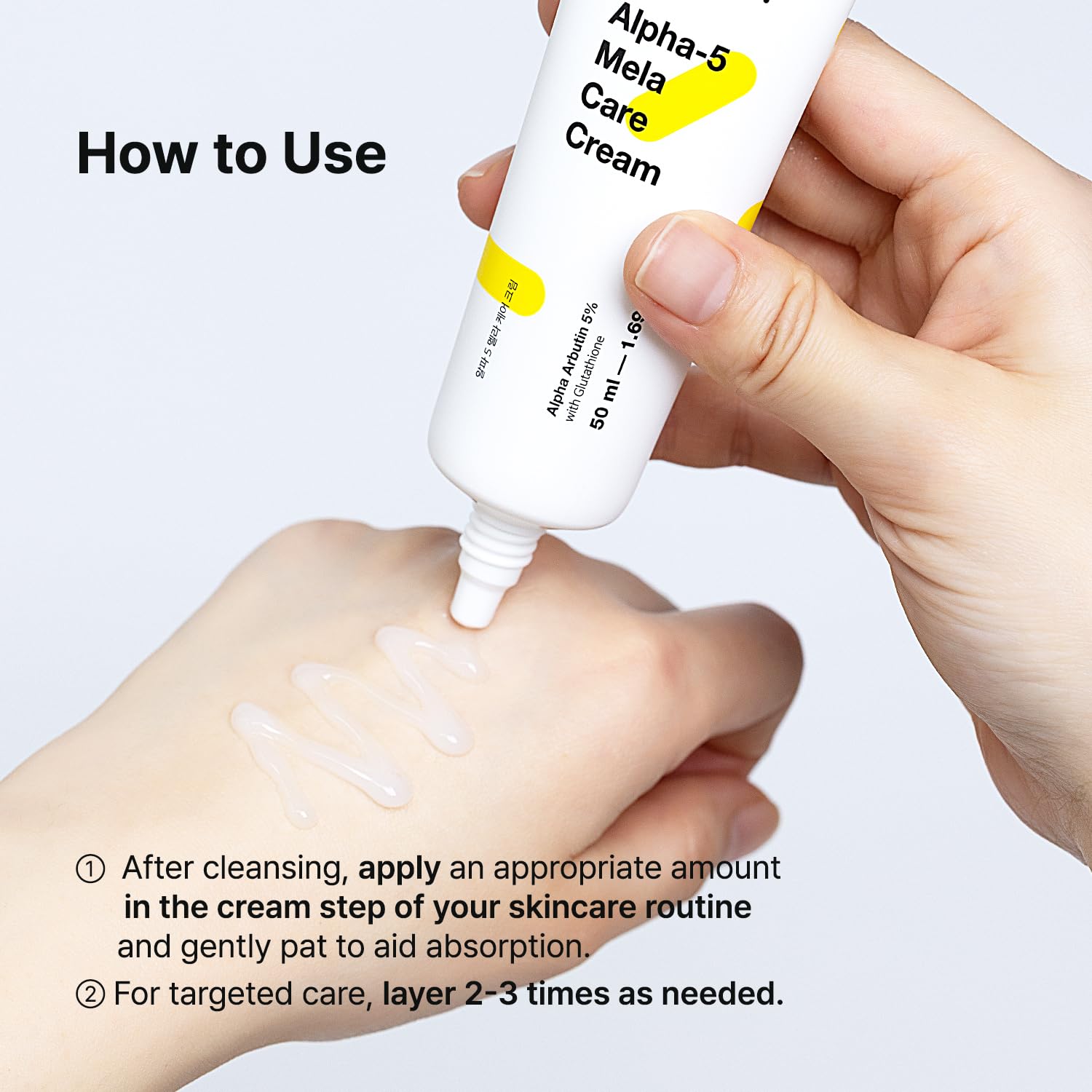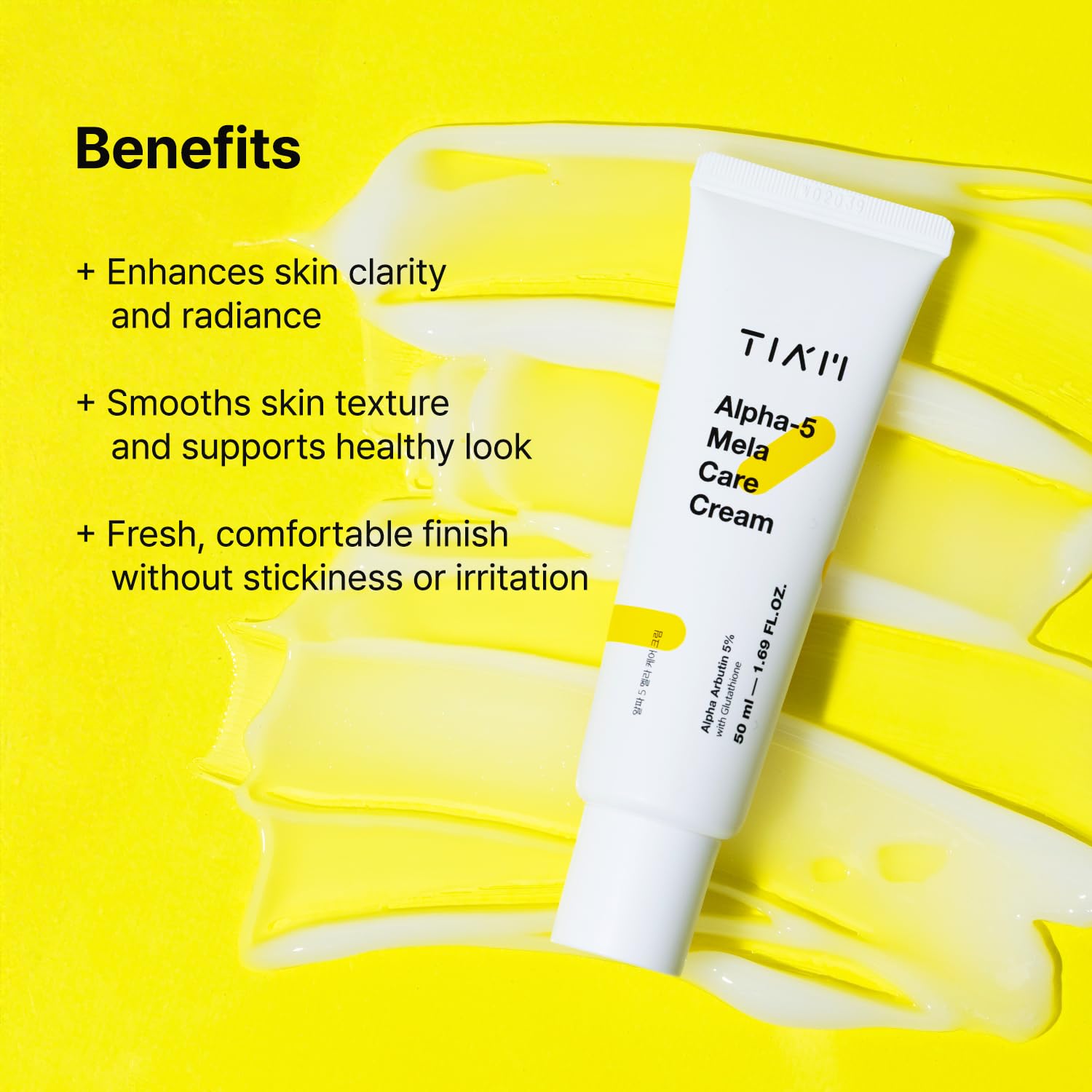 TIA'M Alpha-5 Mela Care Cream, 1.69 fl oz, 5% Alpha Arbutin Glow Enhancing Cream with Glutathione & Niacinamide, Korean Skin Care
