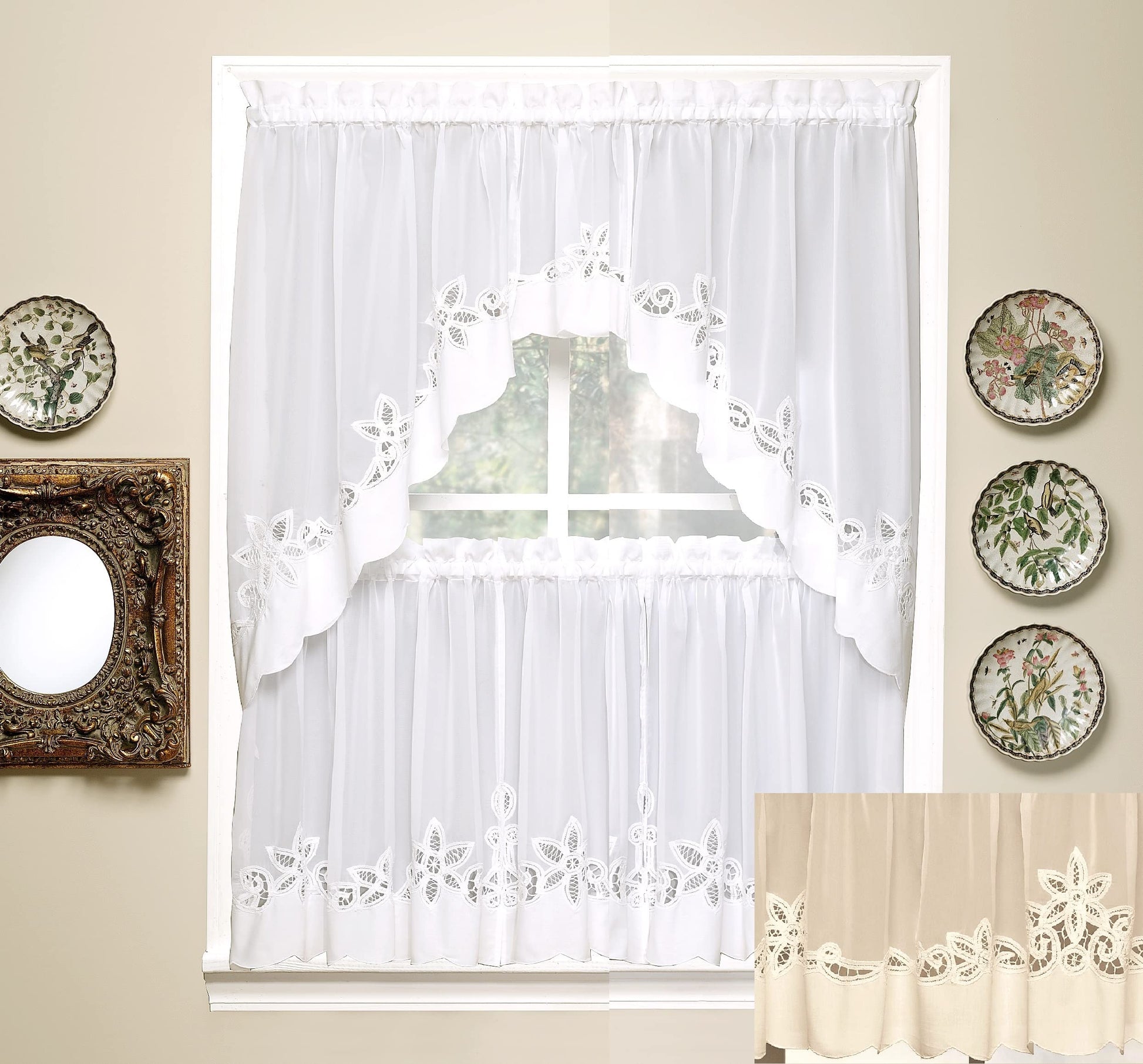 Today's Curtain Plymouth Classic Battenburg Applique Sheer Window Tier, 30-Inch, Ecru