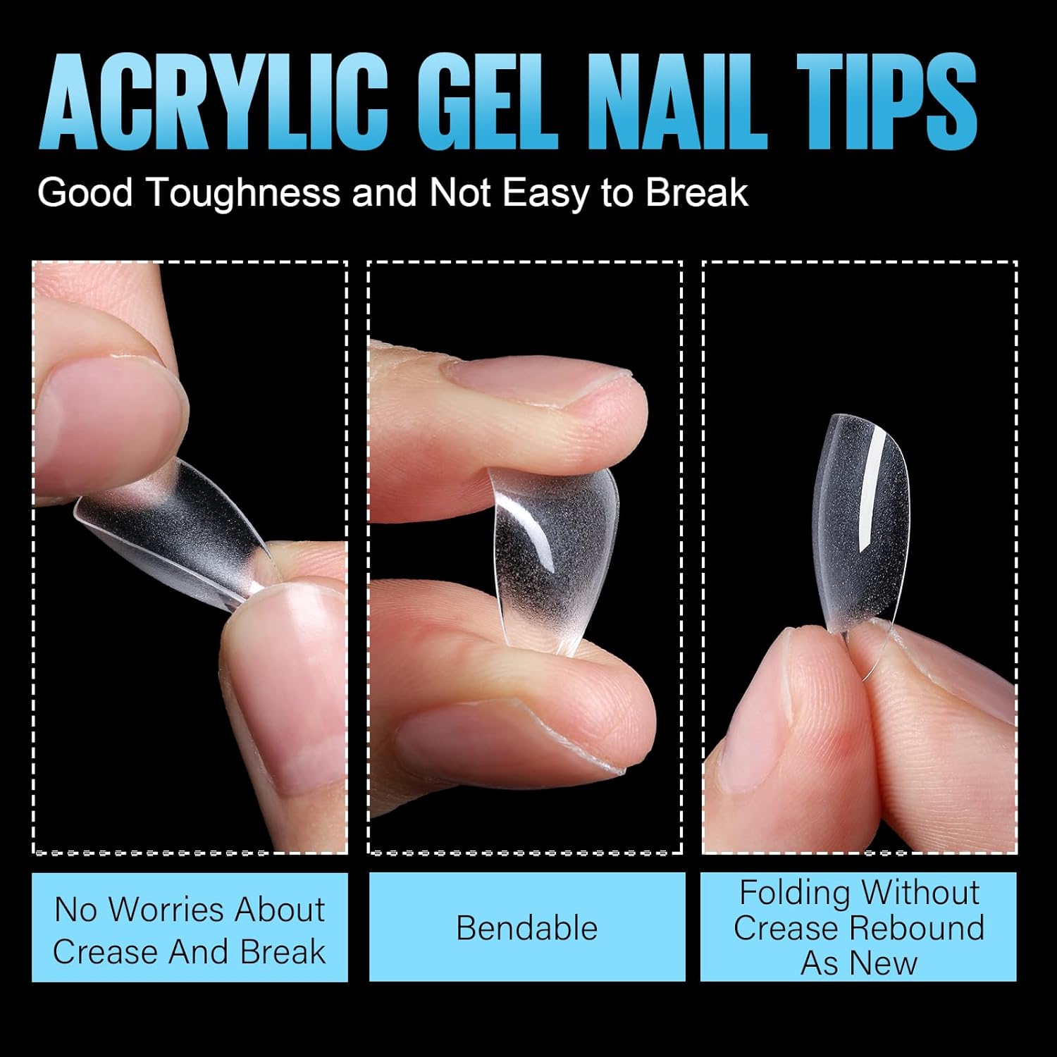 - Extra Short Square Tips with No Trace: The fake nails is gelly gel tips and will make no trace even bend, bright clear you can more easily press, trim, paint flat false nails to make your dream nails shape. Real DIY manicure acrylic nail kit.