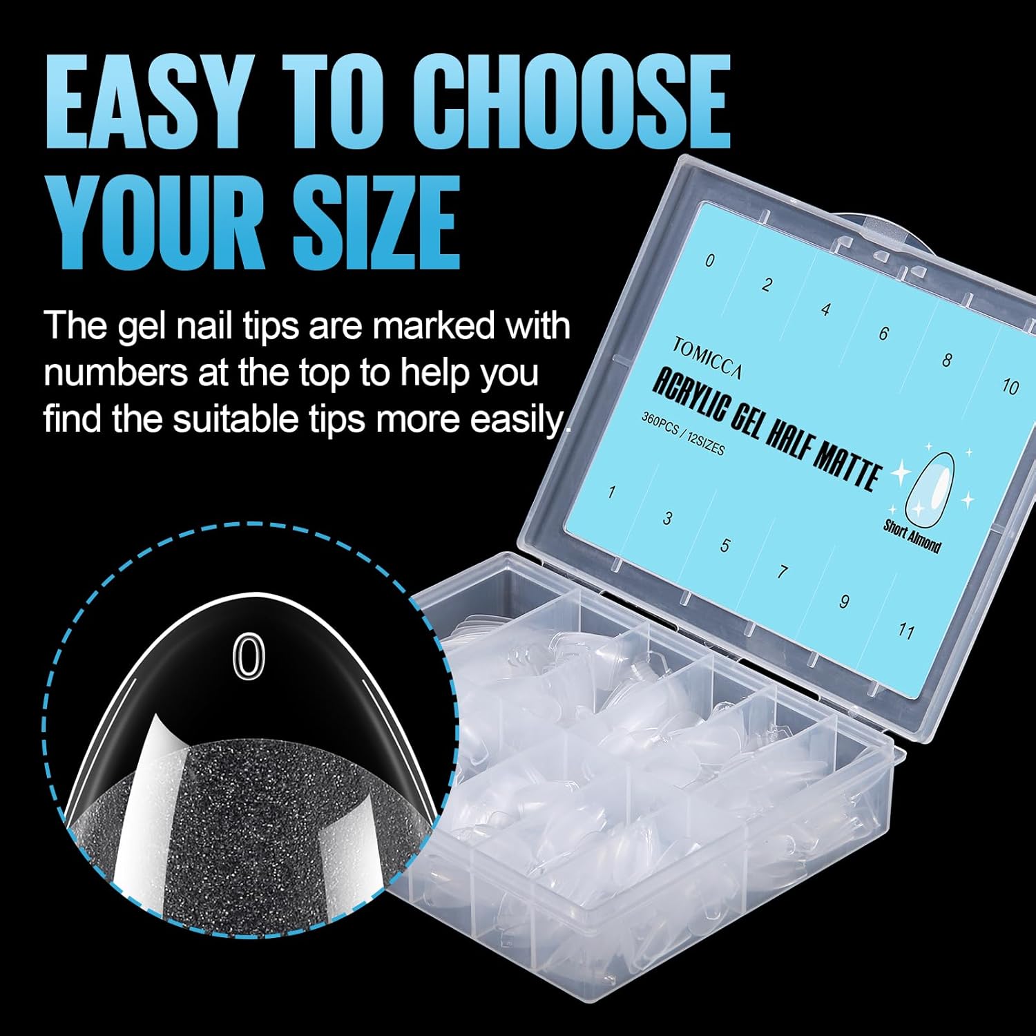 - Half Matte Extra Short Square Nail Tips: TOMICCA introduces a half matte design that eliminates the need for nail buffing. This reduces damage to your natural nails, increases the grip between the false nail tips and your natural nails, and promotes healthier and sturdier results.