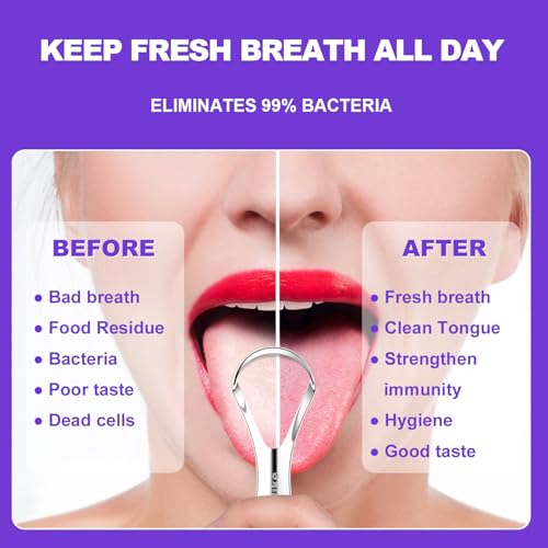 - ¡¼REMOVE BUILDUP & REDUCE BAD BREATH¡½: Tongue scraper can effectively remove tongue coating on the tongue and maintain oral hygiene. Moreover, the direct benefits of using this self-care product to scrape the tongue include refreshing breath, enhancing taste, boosting confidence, and improving overall health.
