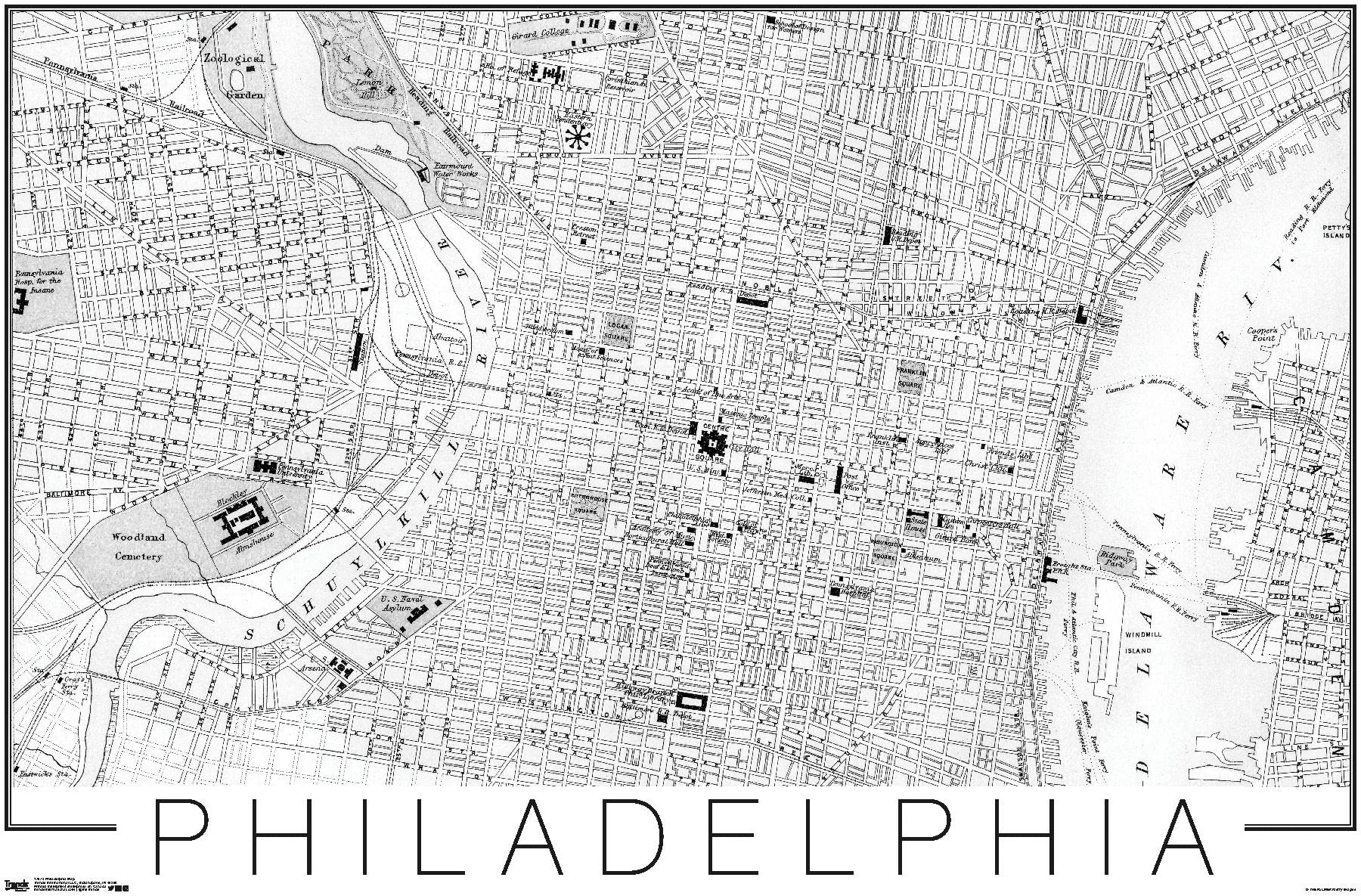 Trends International Philadelphia Map Wall Poster, 22.375" x 34", Unframed Version