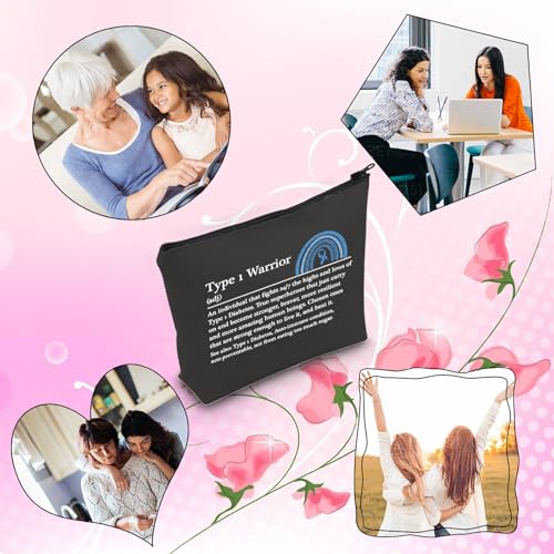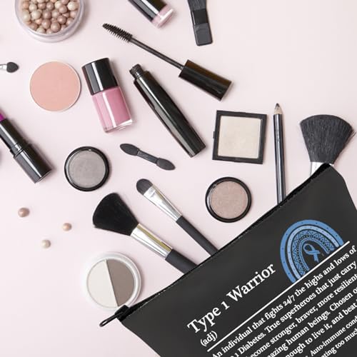 TSOTMO Diabetes Makeup Bag - Cosmetic Bag - Black - Travel, Makeup, Toiletry, Gift - Diabetes Warrior Supply Kit Gift (BLK- Type 1 Warrior)
