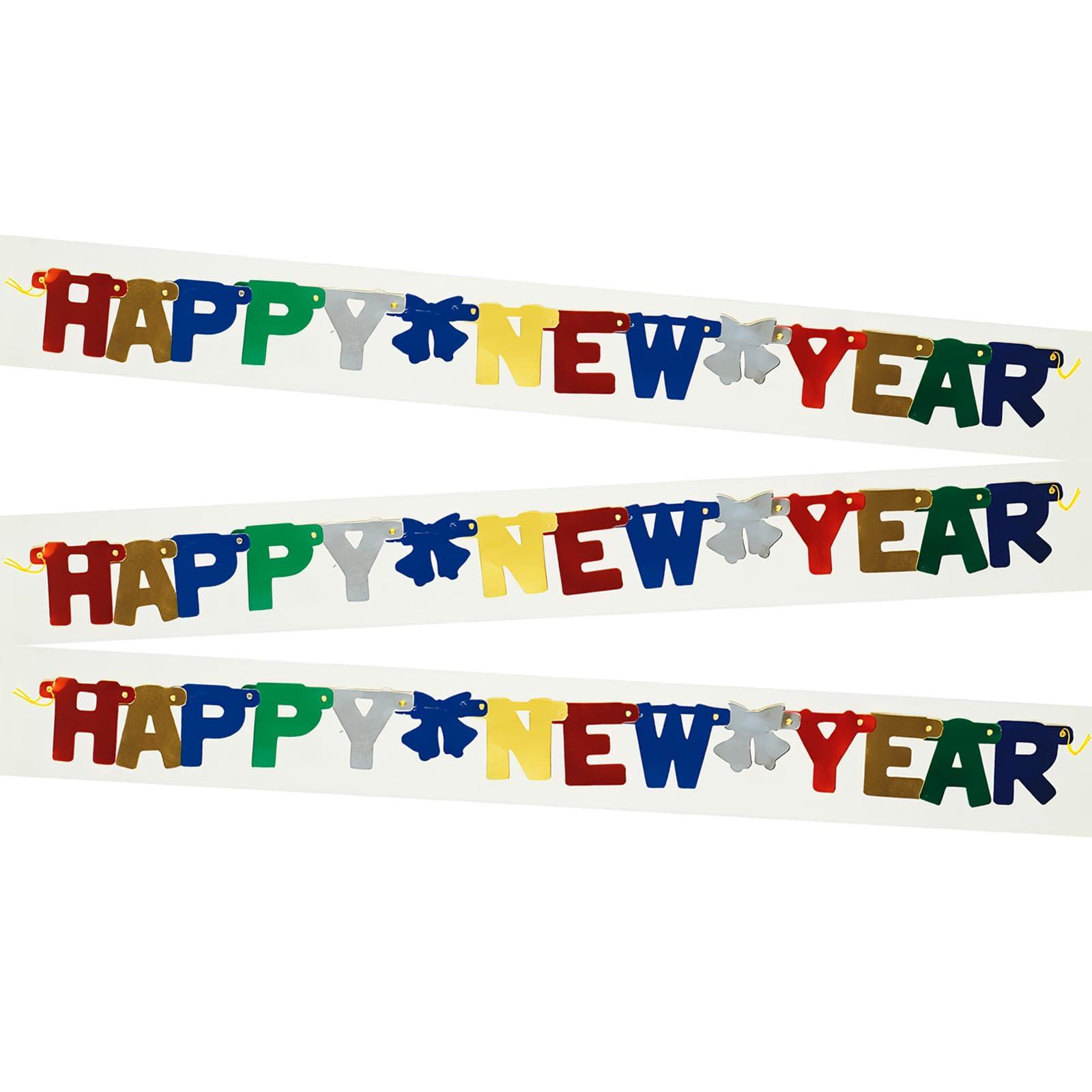 - BRILLIANT DESIGN: Brighten up your decoration with this banner that features brilliant metallic-colored letters that spell out "New Year".