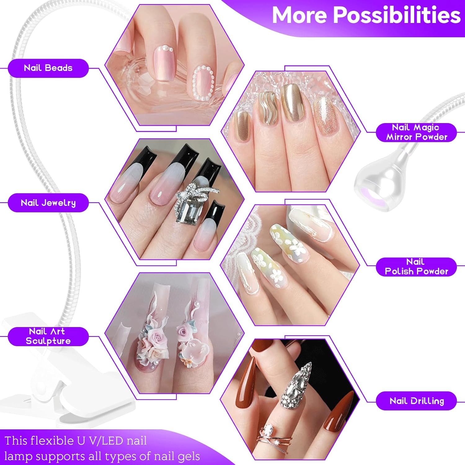 - USB Powered UV Light: The uv nail dryer fixtures are adjustable lamps. UV nail light has 3W LED lamp beads, and portable clamp uv light for nail is of low power consumption with long life, at the same time uv lamp for gel nails is safe, environmentally friendly. lamp equipped with a control switch, gel nail lamp support all power supplies with USB charging, including computer host, mobile phone charger, etc.. UV nail lamp plug and play can be used for nail salon.