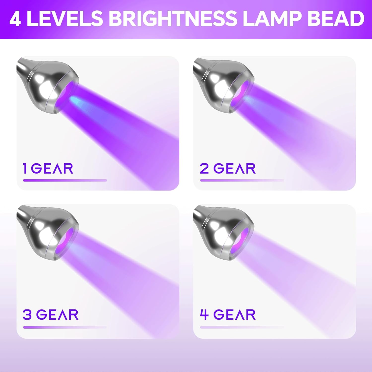 - Multi-Purpose Nail Lamp Light: Nail light for nail tech equipped with single 3W large chip LED. Black light bulb led can provide you with the function of bill recognition and nail lamp can fast drying nail polish both indoors and outdoors. UV lamp not only for lamp nail polish, repairing phones, for black paint, nail tips art, black light posters, stain detection and glow party, but also gooseneck uv lamp is suitable for banknote verification