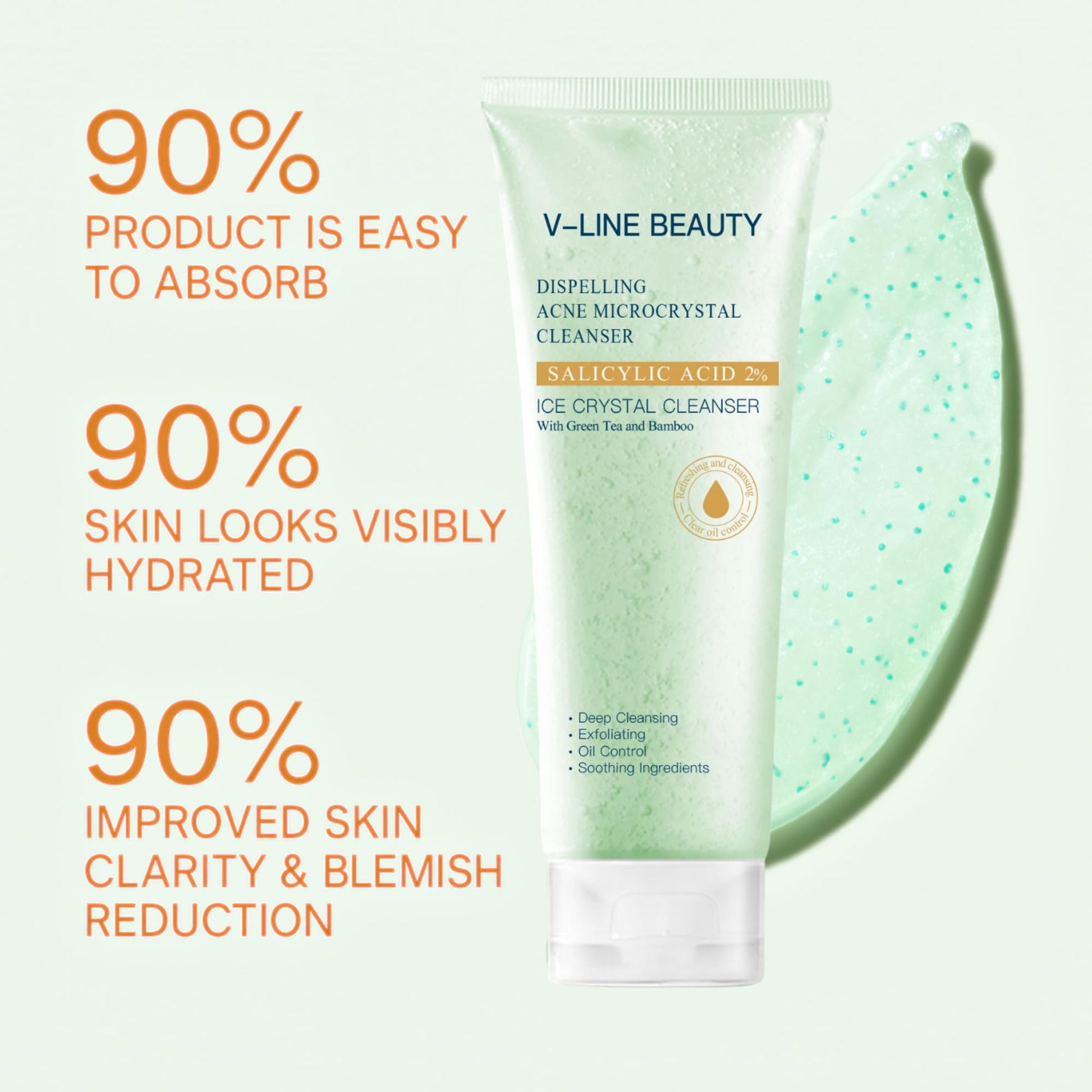 V-Line Beauty Microcrystal Gentle Cleansing Facial Gel Scrub for Oily Skin, 2% BHA + Glycerin + Green Tea + Bamboo, Soothing, Hydrating and Help Clear, Suitable for Sensitive Skin