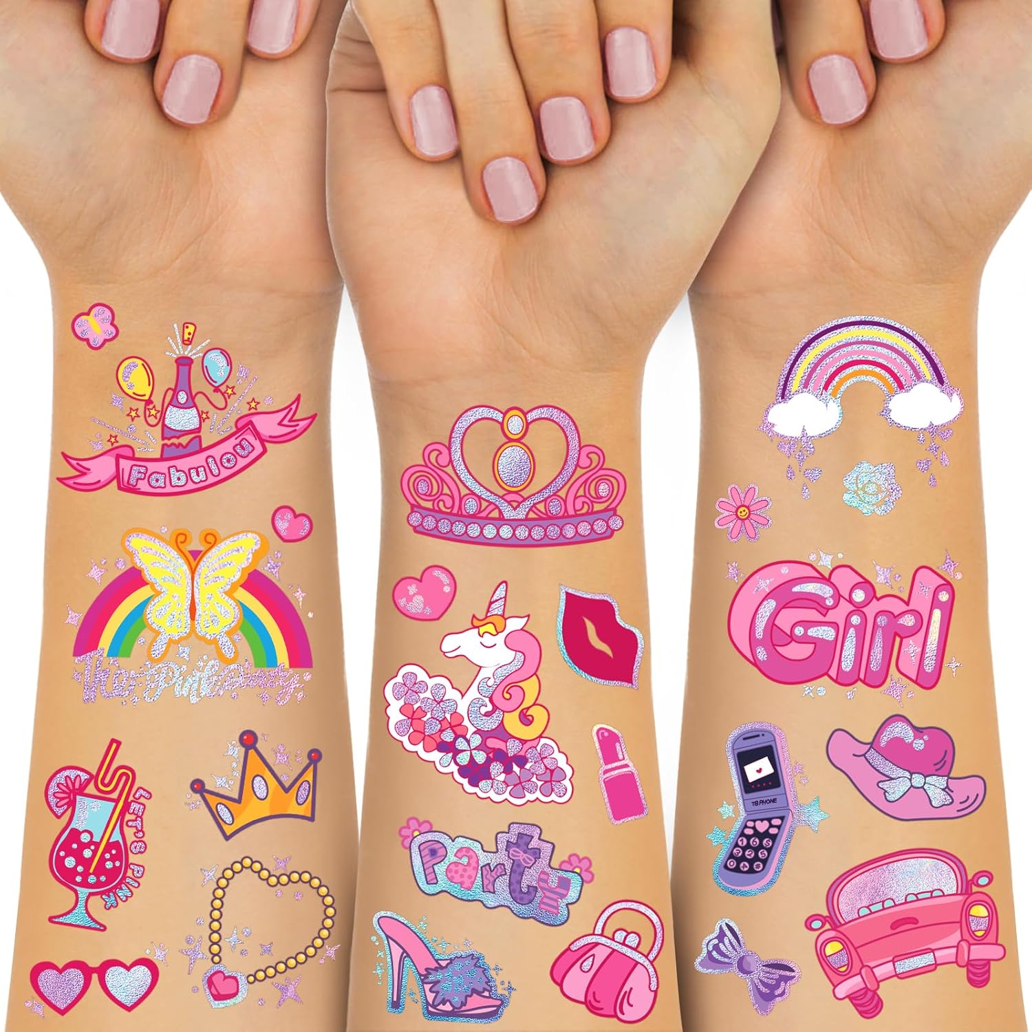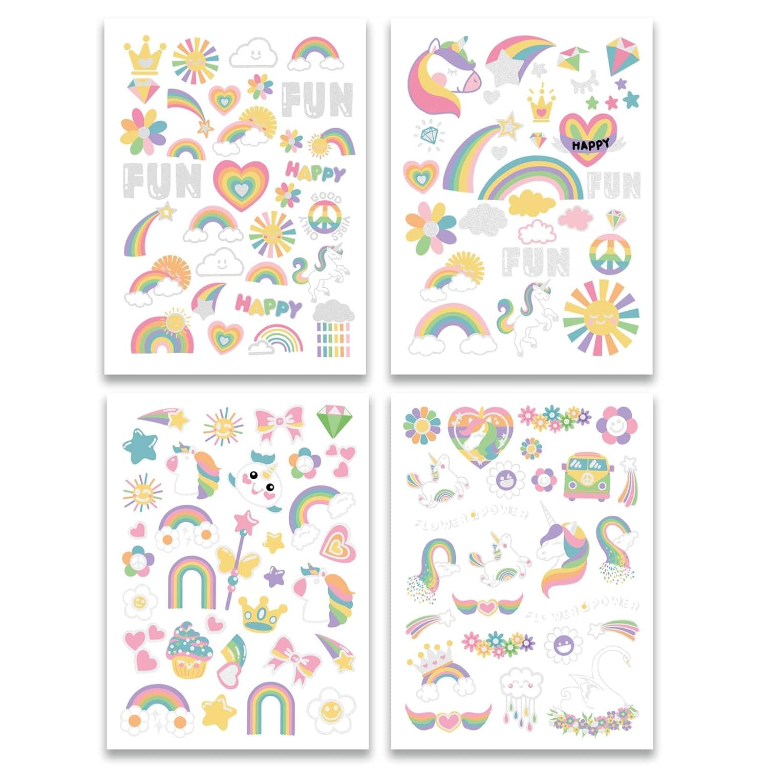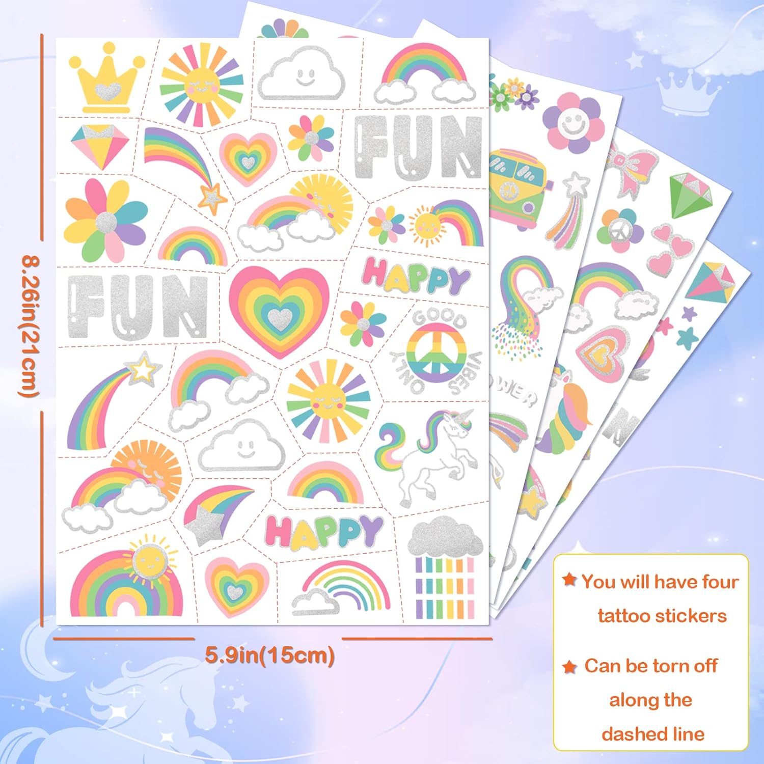 - ❥[WITH THE THEME OF HAPPY PARTY] With the theme of happy party, temporary tattoos are hippie-themed. Like Star Unicorn Smiley Rainbow Flower Candy Crown Metallic sticker etc. Good choice for boys or girl family party, birthday party, festival party