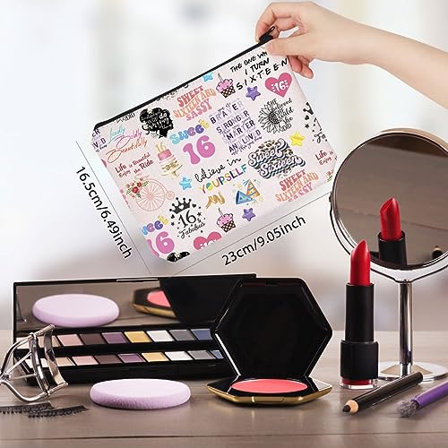 WCGXKO Happy 16th Birthday Gift Sweet 16 Birthday Hello 16 Canvas Zipper Pouch Bag (16 birthday)