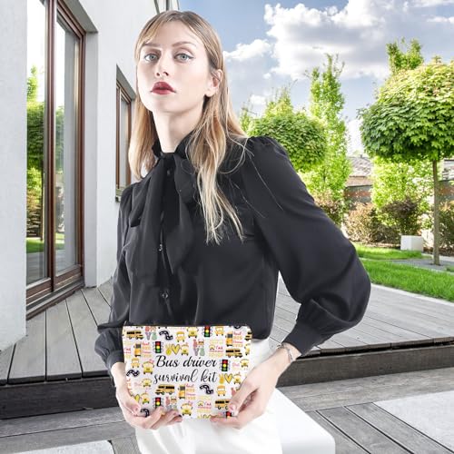 WCGXKO School Bus Driver Gift End Of Term School Bus Driver Gift School Bus Driver Survival Kit Cosmetics Bag (Bus Driver ever), Beige