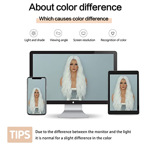 - Premium Material: The white wigs are made of high-quality heat-resistant synthetic fiber. The white wig is easy to style and maintain, and soft to touch. The hairline is hand-tied for a more realistic look, and the lace scalp ensures breathability and comfort. This white wavy wig come with free wig caps and are not easily tangled or shed. Whether you're looking for a long wavy wig, these synthetic wigs are the perfect solution to enhance your look and make you feel gorgeous and sexy.