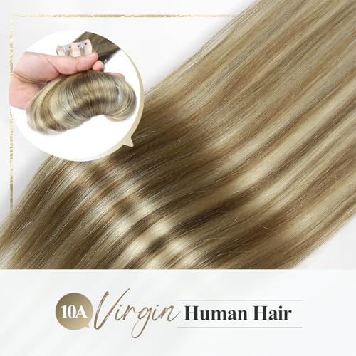 WIGER Seamless Highlighted Honey Blonde Human Hair Extensions No Glue No Gel Insert Human Extensions Balayage Invisible PU Hair Extensions (18 In, 20 Pcs)
