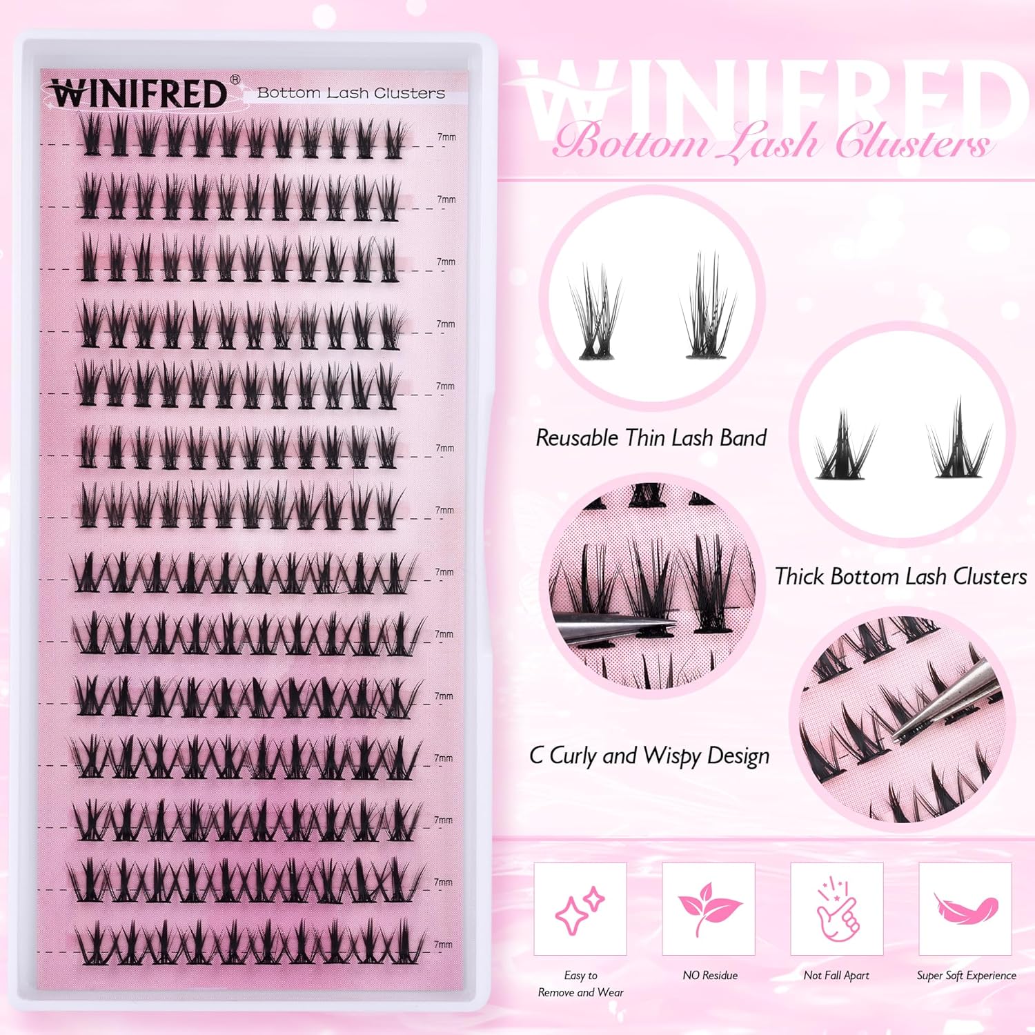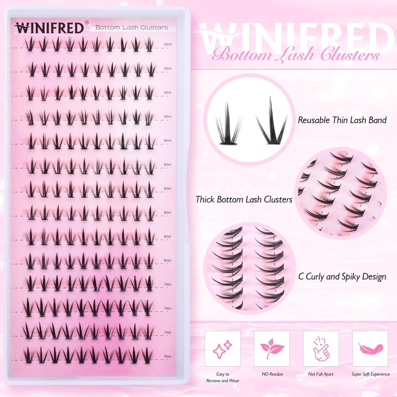 Winifred Bottom Lash Clusters Thick Volume Lower Lash Extension DIY Individual Lashes Bottom Clusters Lashes for Cluster Eyelash Extensions (168pcs)