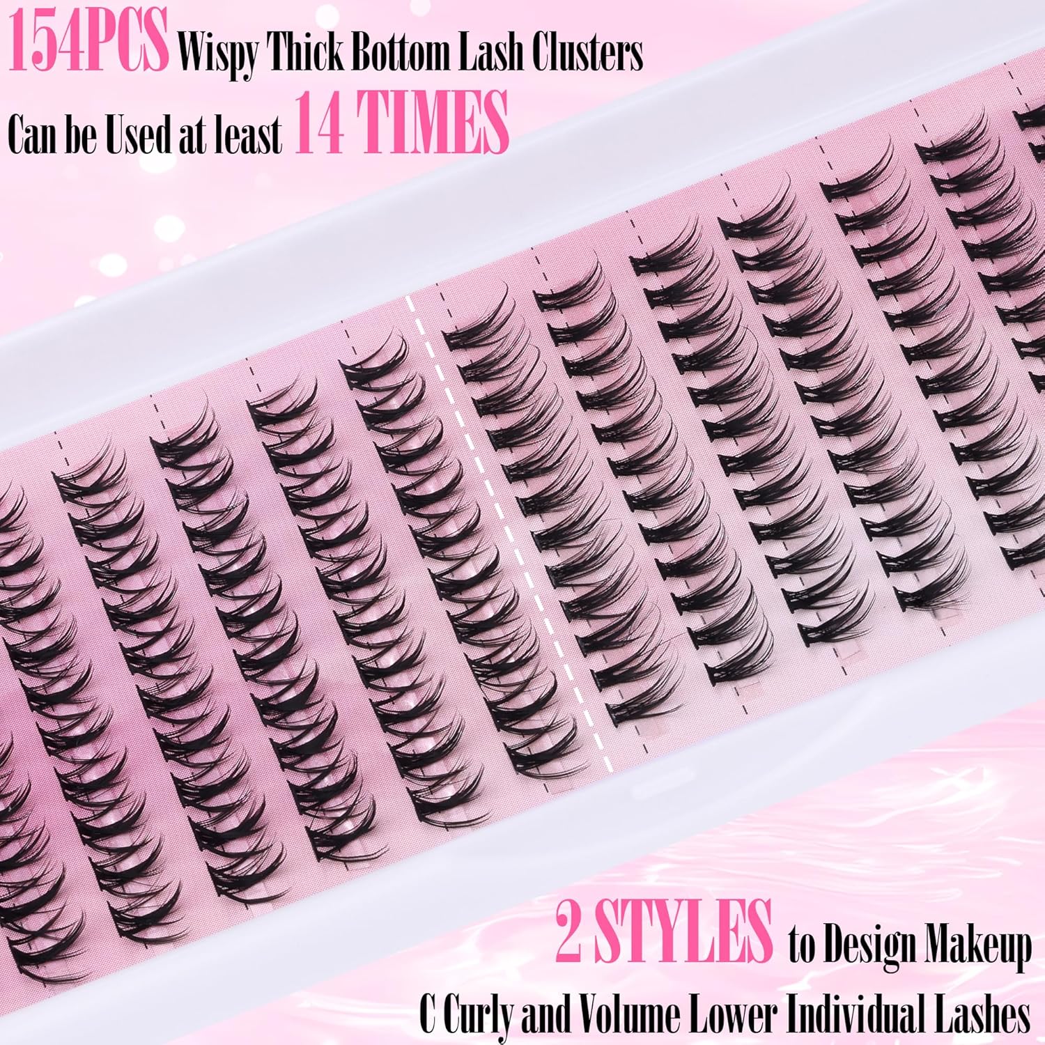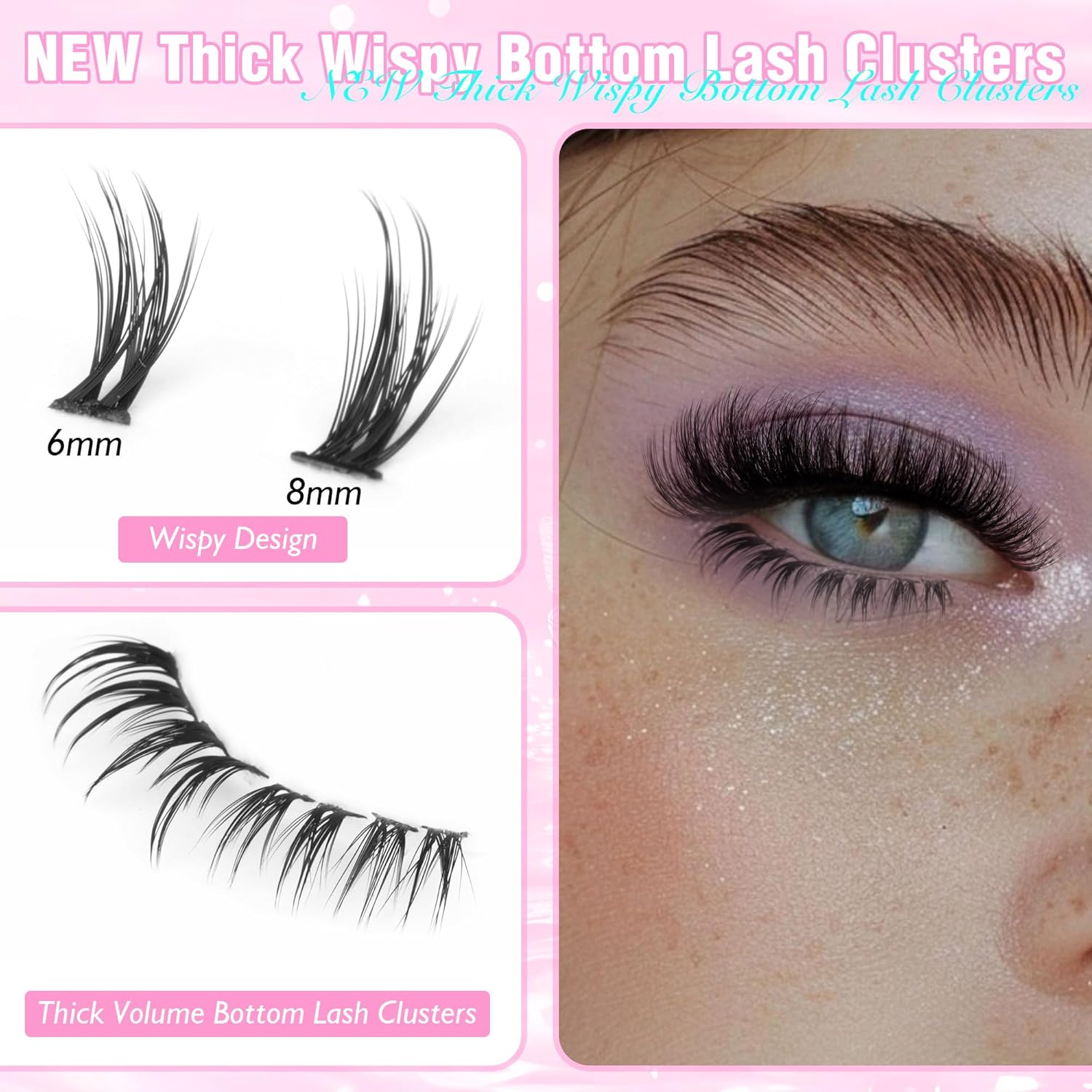 - DIY Bottom Lash Clusters: Thick volume bottom cluster lashes are great for modifying your eyelash extension effect, because lower lash clusters are the key to creating a completely customized makeup style. It helps avoiding mascara results which may lead to black clumpy smudge.