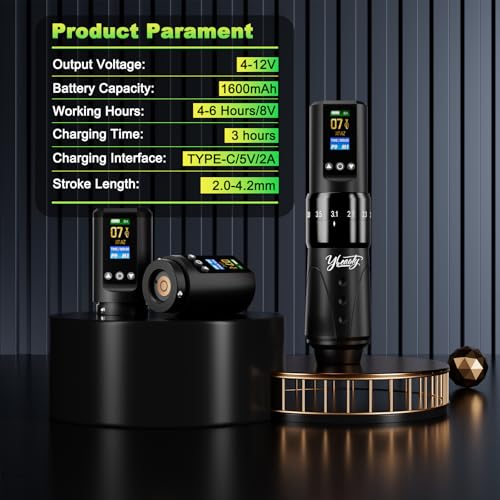 - ??¡¼MULTI FUNCTIONAL APPLICATION AND PRECISE EFFECTS¡½: 7 strokes (2.0mm 2.3mm 2.7mm 3.1mm 3.5mm 3.8mm 4.2mm). That with multiple gear options can be customized according to specific requirements of various tattoo techniques. The tattoo machine operates within a voltage range of 4-12V, the each adjustment precise to 0.1V; It has a wide audience, beginners can easily choose the appropriate mode parameters and skilled tattoo artists can choose from various modes available for complex designs