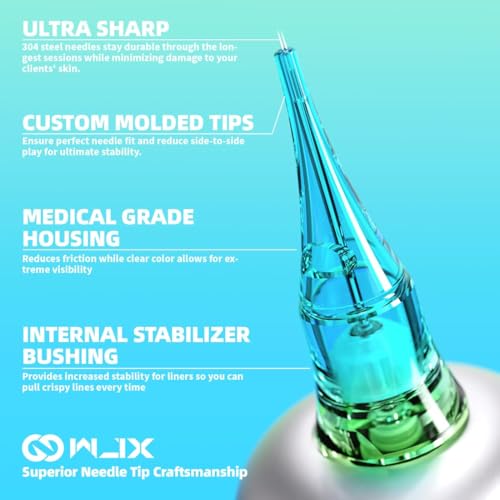 Wjx Ultimate Tattoo Cartridge Needles 50Pcs Mixed Size 0403RL 0803RL 1003RL 1005RL 1203RL 1205RL 1207RS 1207RM 1209RM 1211RM Assorted Disposable Tattoo Needles Fits Different Tattoo Guns