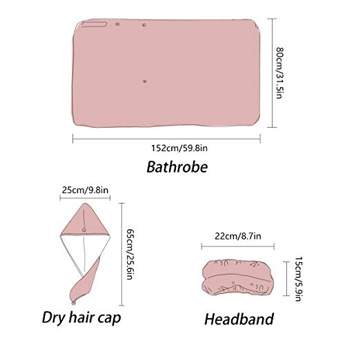 - 3 PIECE TOWEL SET - This set includes 1 Dry Hair Cap 9.8" x 25.6", 1 Headband 5.9" x 8.7", and 1 bath towel 31.5" x 60".