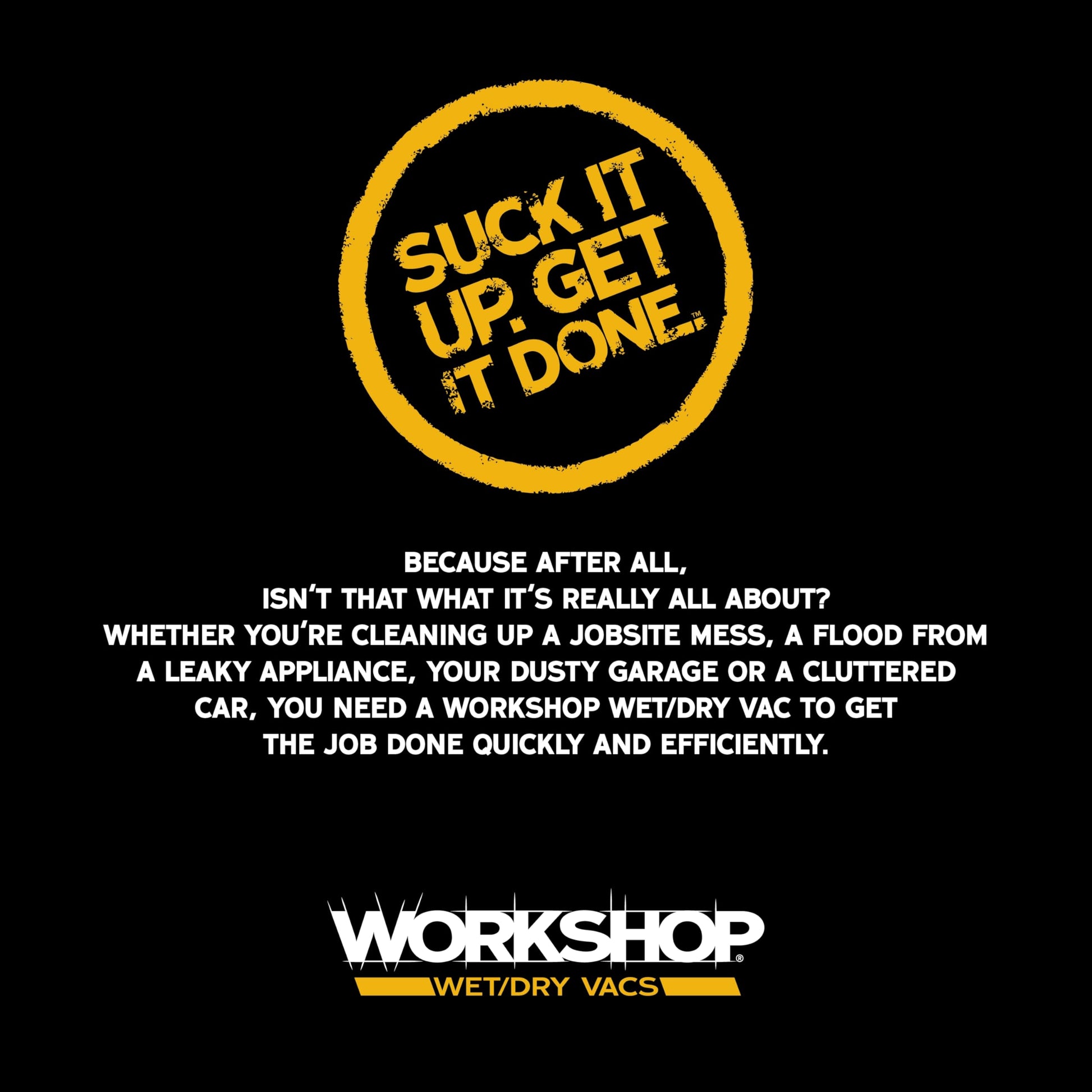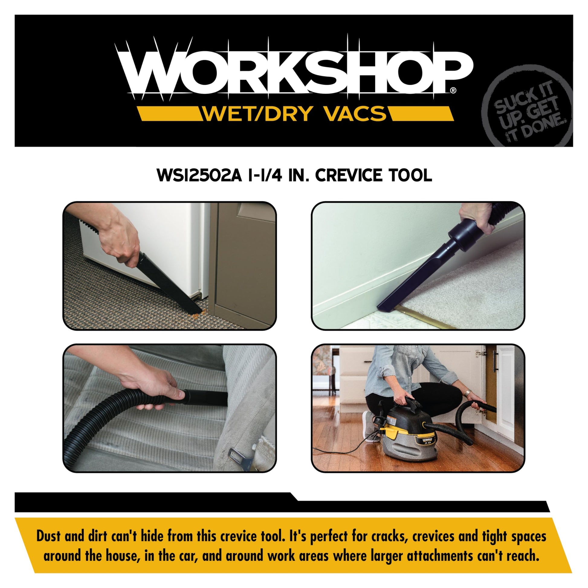 - Suck It Up. Get It Done. with WORKSHOP Wet Dry Vacs WS12502A wet dry vacuum crevice tool