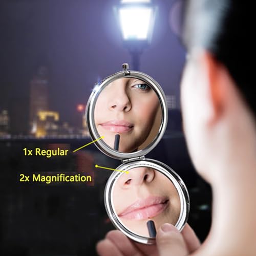 - Double-Sided Round Mirror,one side is regular and the other is magnified.Makes makeup,travel to use,and a wonderful mirror for everyday life.Mirror Comes in a Elegant velvet jewelry pouch for gift giving.
