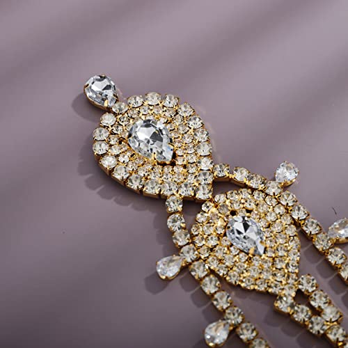 Xerling Bridal Forehead Headpiece for Wedding Zircon Crystal Dangling Tassel Head Chain Clip-on Hair Accessories for Women Boho Hair Piece (Gold)