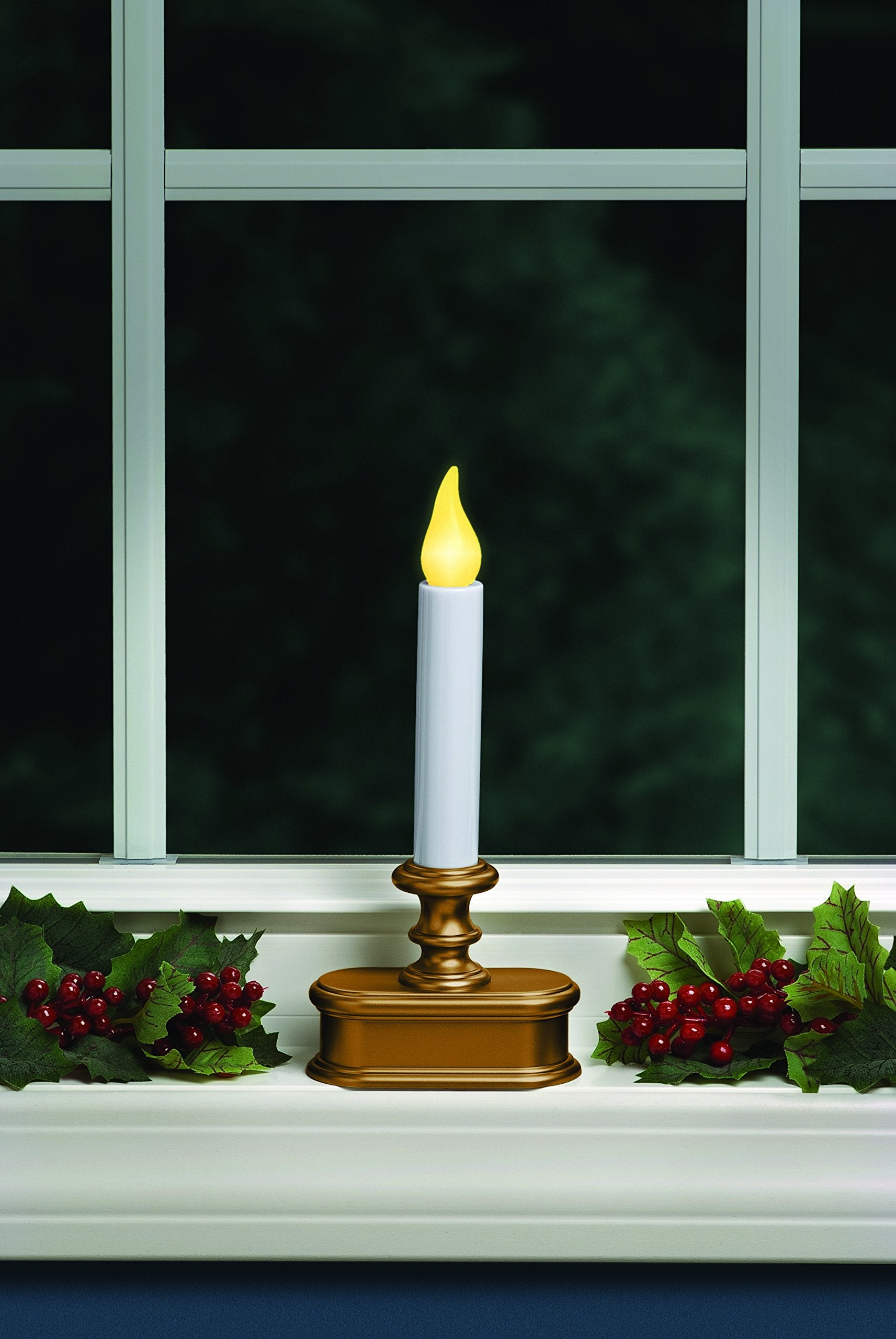 Xodus Innovations FPC1221B 8 inch Battery Operated LED Dusk to Dawn Window Candle with Amber Steady On or Flicker Flame, Gold/Brass