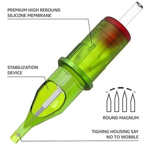 YABA 20Pcs Standard Disposable Tattoo Needles Cartridges Bugpin for Tattoo Artists,Membrane Magnum Tattoo Cartridges Needles for Tattoo Gun (1209CM)