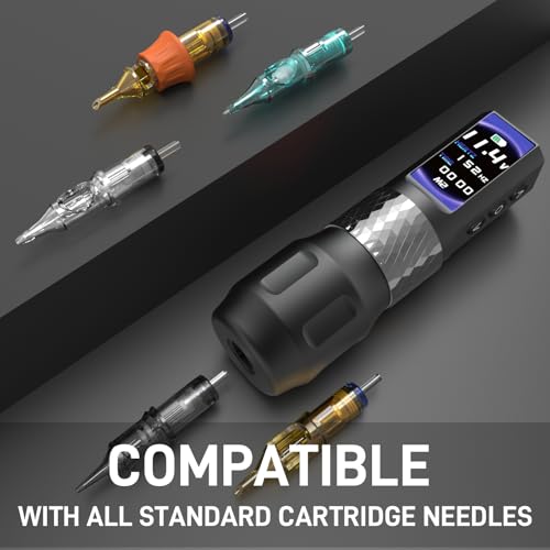 - ¡¼Easy to Use¡½- The tattoo pen machine features a visible OLED color screen at the front of the battery, displaying the operating voltage, Hertz display, working time, and memory switch. With an adjustable voltage range of 4V-12V, it can support long-term tattoo work. The lighter and quieter design enhances overall control and user experience.