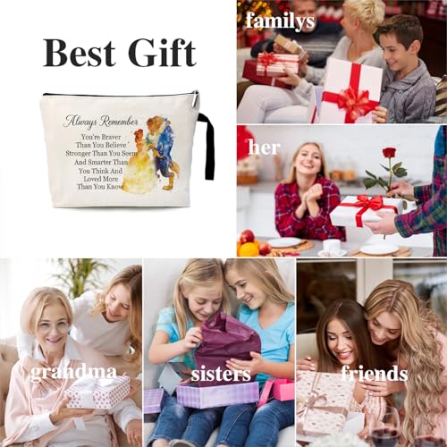 You Are Braver Stronger Funny Canvas Zipper Makeup Bag, Travel Accessories Storage Toiletries Bag, Beauty Beast Inspired Gifts, Gifts for Beauty Beast Movie Fans Daughter Sister Friend