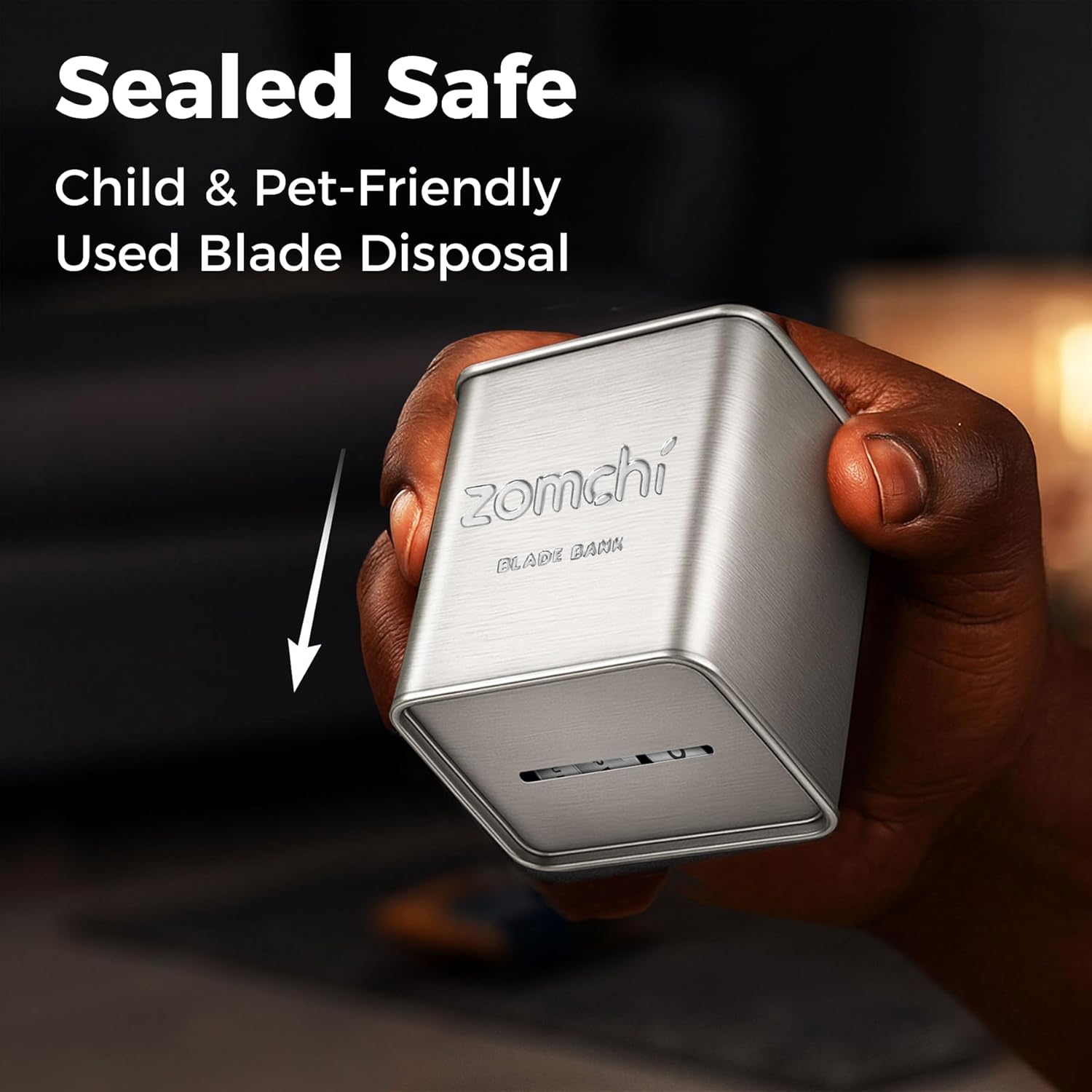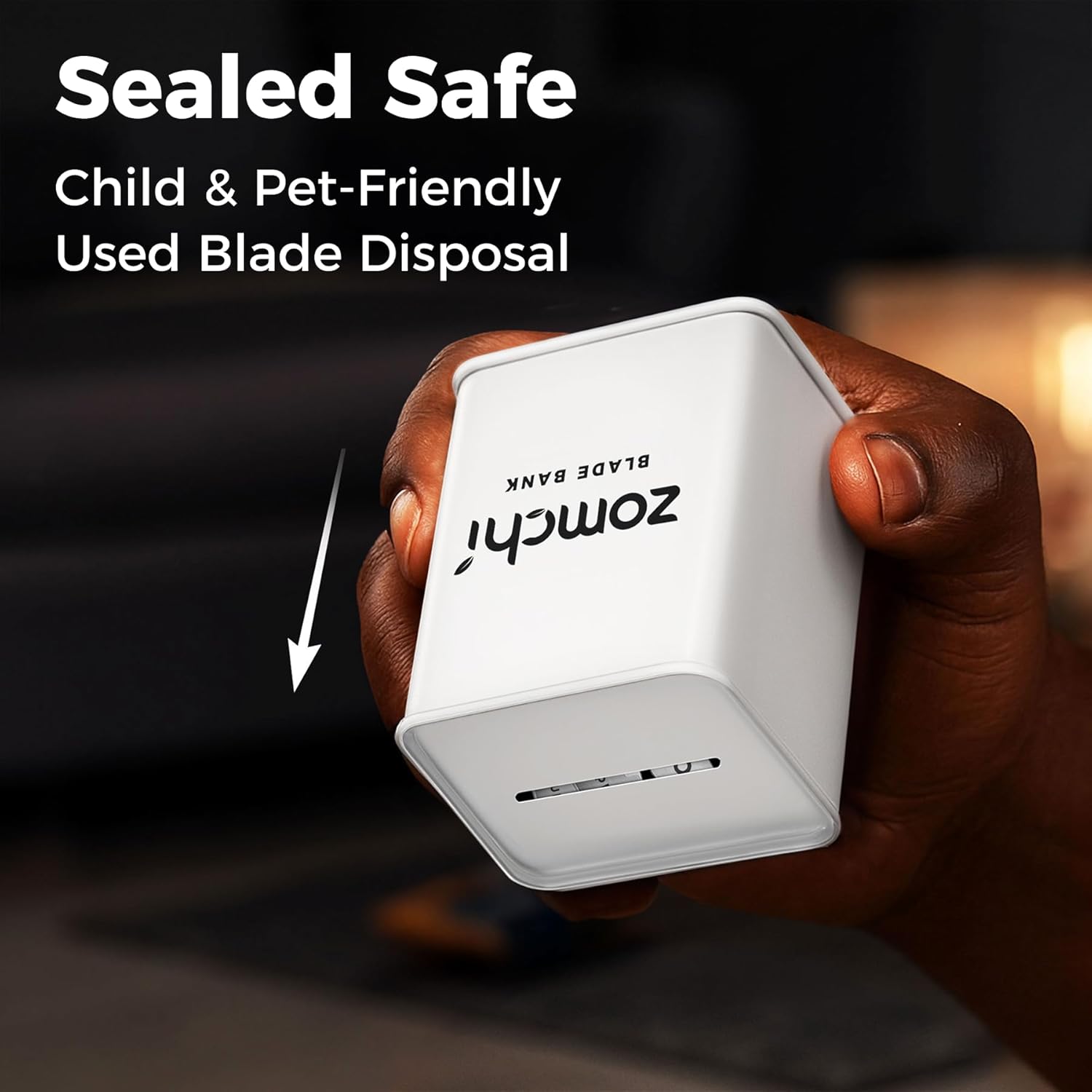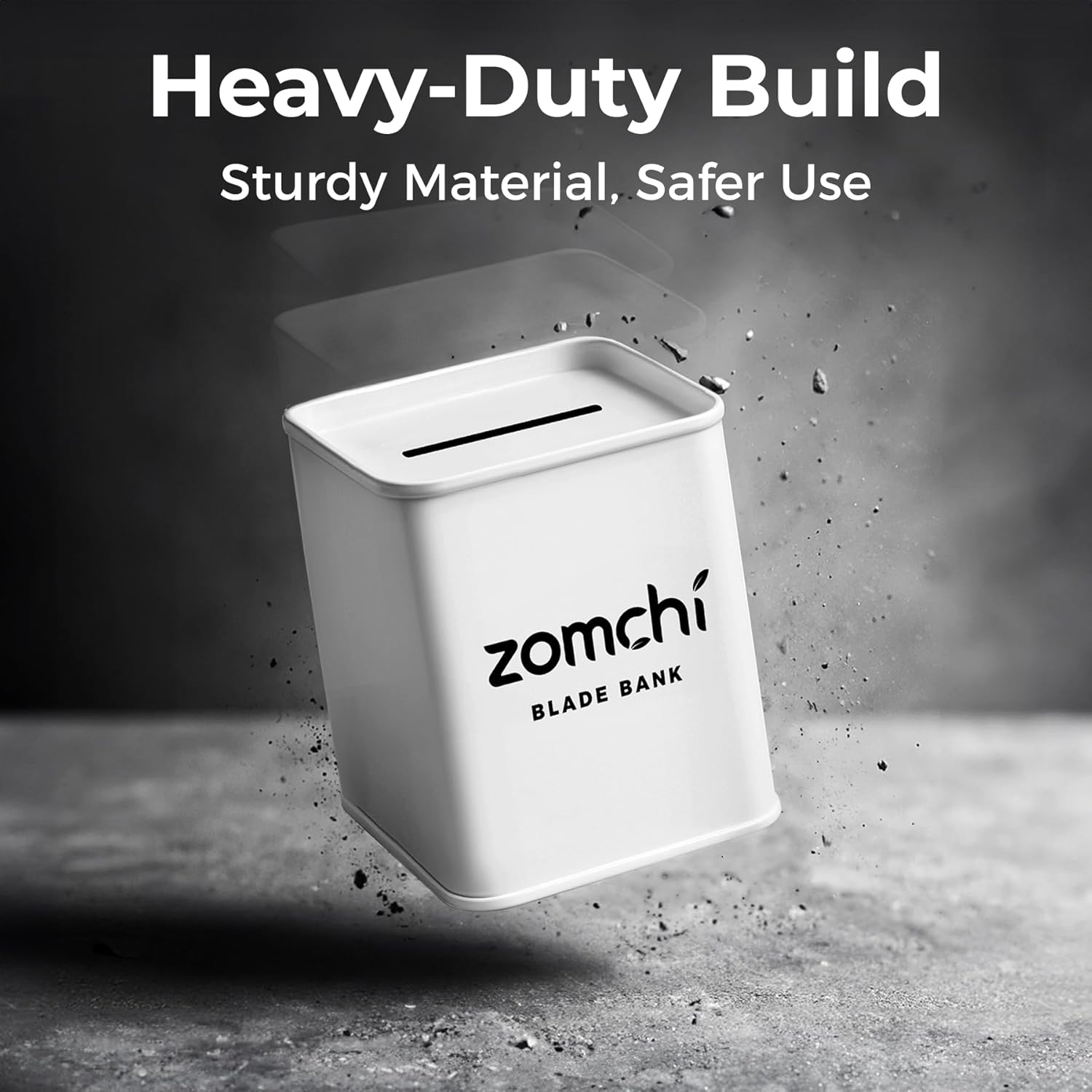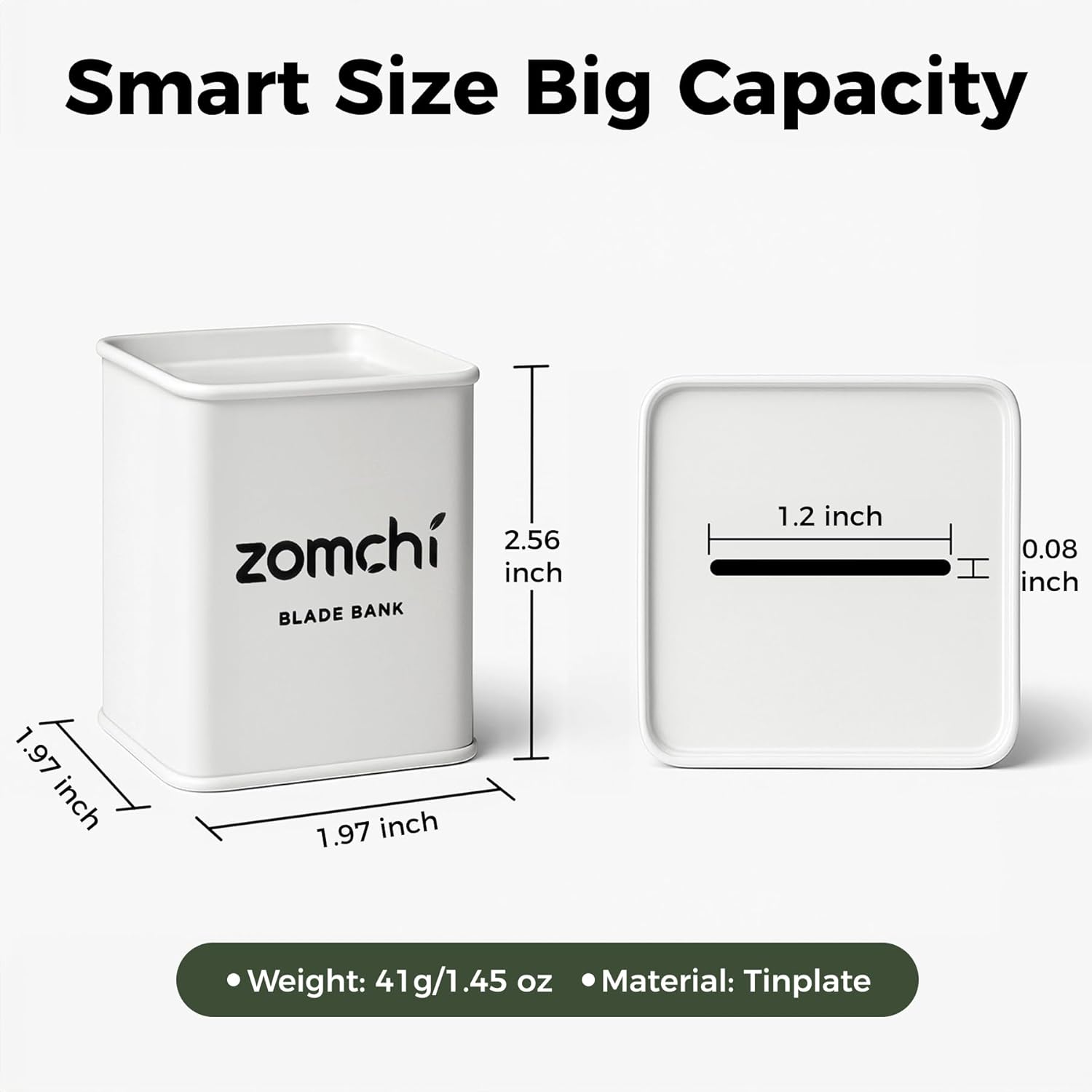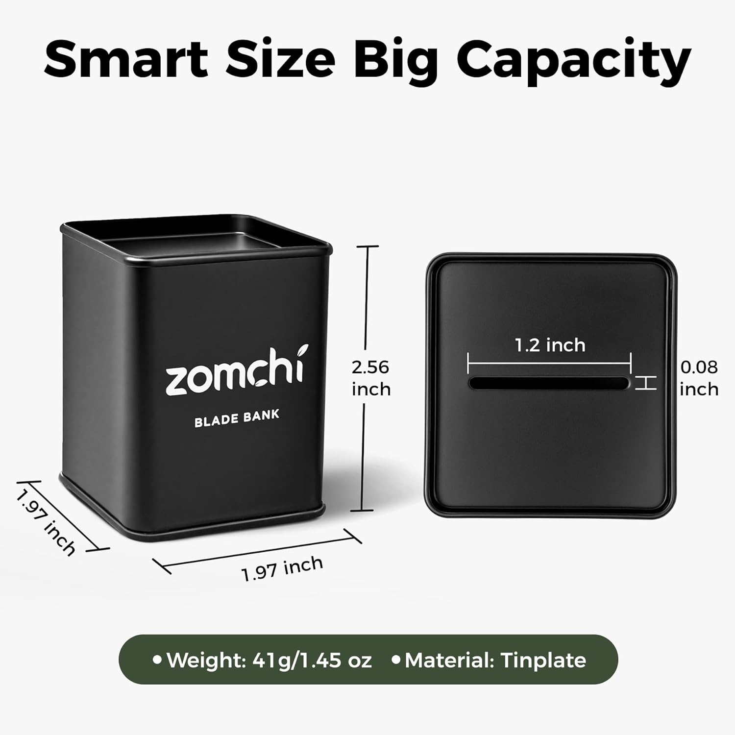 - SEALED DESIGN MUCH SAFER: ZOMCHI Blade Bank with its SEALED DESIGN, The used blades can only slip into the bank through the only Opening Gap at the top of the storage case, which could not only avoid escaping of razor blades and effectively protects users getting hurt when disposal the used razor blades, also can keep children safe although they have touched the Blade Bank in case.